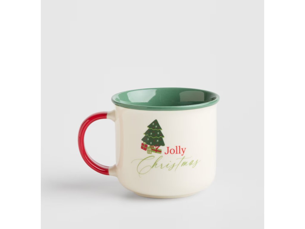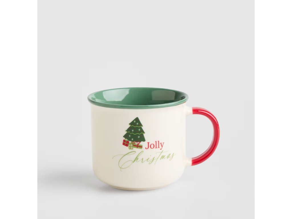 Roztomilý, sviatočný dizajn Hrnčeka Giftosio jolly uchvacuje subtílnym spojením krémového pozadia so zeleným okrajom a červeným uchom. Na hrnčeku je grafika znázorňujúca vianočný stromček a darčeky, a tiež nápis "Jolly Christmas". Viacfarebná kompozícia ideálne zapadá do vianočnej atmosféry, dodávajúc interiéru útulnosť. Hrnček sa dokonale hodí ako darček pre blízku osobu.