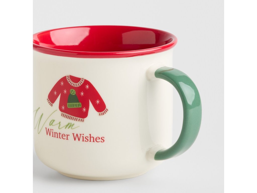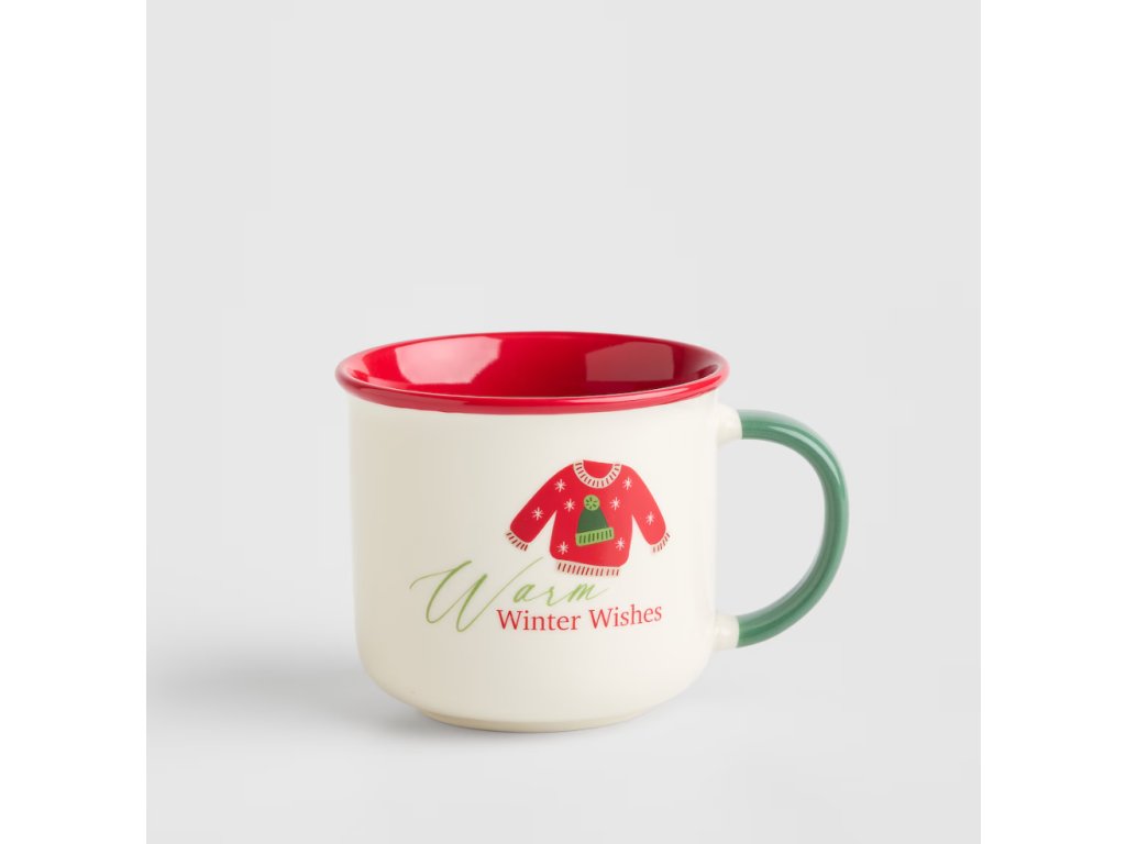 Roztomilý, sviatočný dizajn hrnčeka Giftosio warm vnesie do vášho domova kúzlo Vianoc. Krémová farba porcelánu ideálne ladí s červeným vnútrom a zeleným uchom. Na hrnčeku je grafika znázorňujúca červený sveter so sviatočným motívom a pod ním nápis "Warm Winter Wishes". Tento viacfarebný hrnček sa dokonale hodí do každého sviatočného interiéru, dodáva mu útulnosť a pôvab. Je to tiež vynikajúci nápad na darček pre blízku osobu.