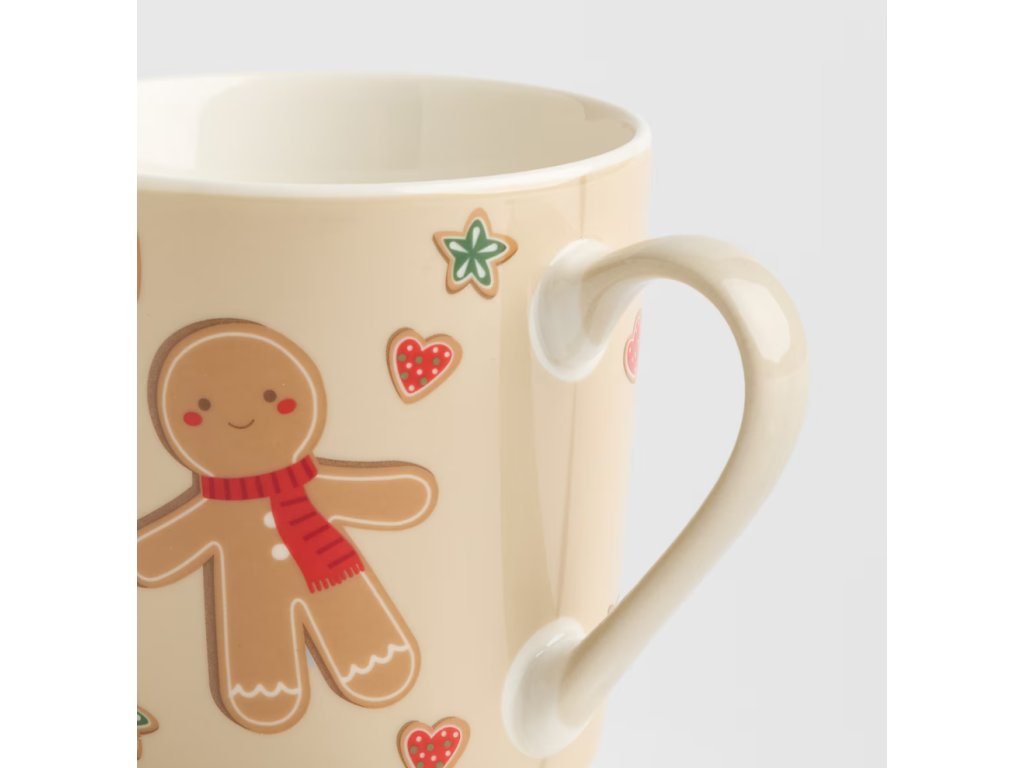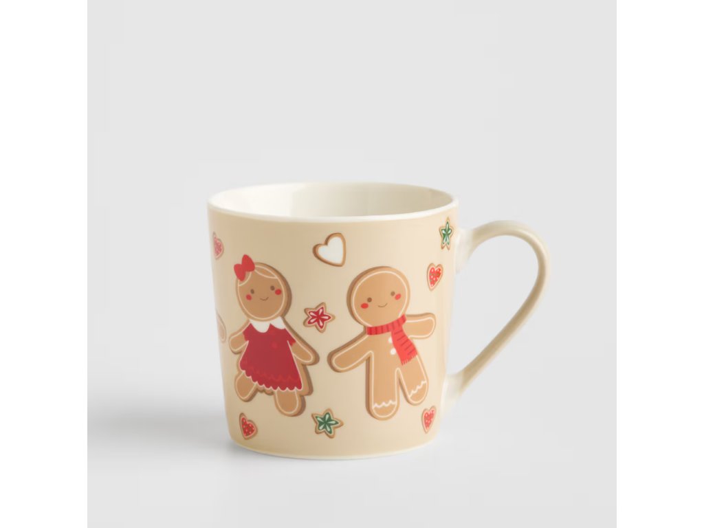 Rozkošný dizajn hrnčeka Ginno s motívom medovníkov v odtieňoch béžovej, červenej a zelenej ideálne zapadá do sviatočnej atmosféry. Hrnček krémovej farby je ozdobený obrázkami usmievavých medovníčkov, srdiečok a hviezdičiek. Tento roztomilý hrnček sa bude hodiť tak do moderných, ako aj do klasických interiérov, dodávajúc im útulný charakter. Je to tiež vynikajúci nápad na vianočný darček pre blízku osobu.