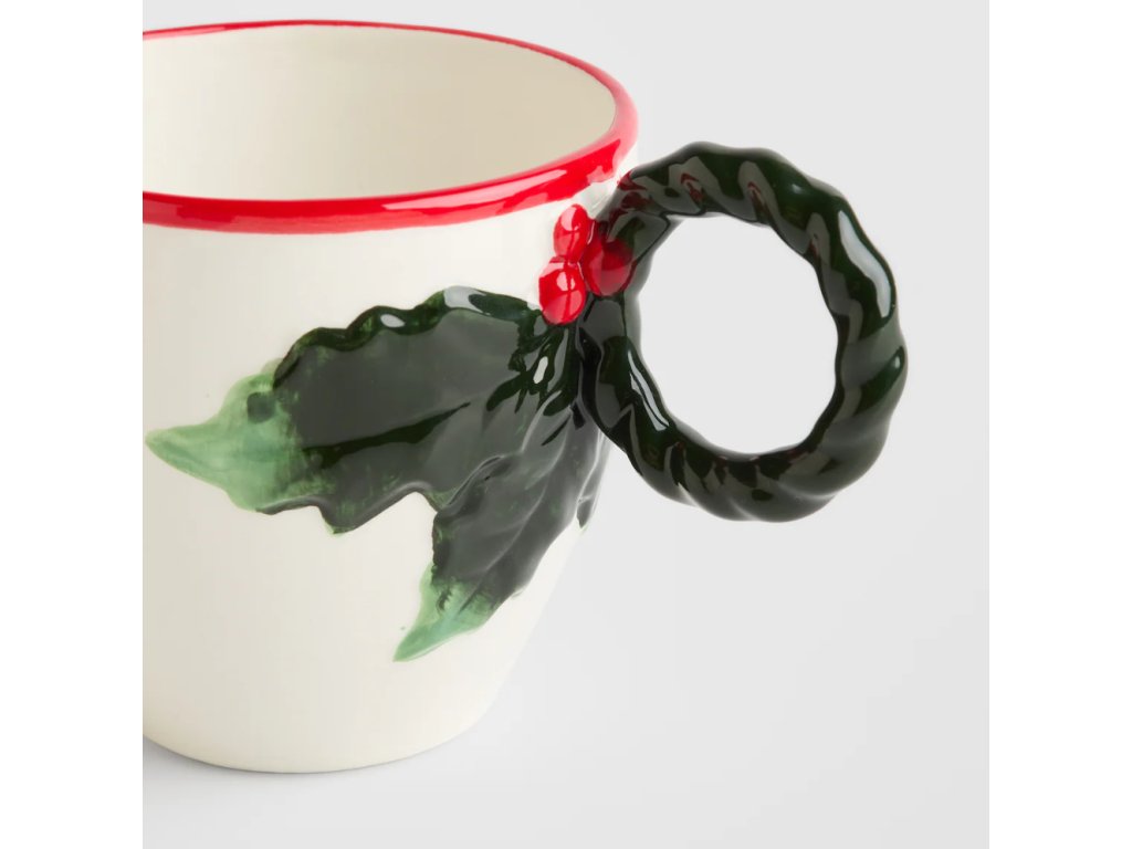 Sviatočný motív listov cezmíny v intenzívnych, viacfarebných odtieňoch podčiarkuje výnimočnosť hrnčeka Illis, ktorý dokonale doplní aranžmány vo vianočnom, klasickom alebo modernom štýle. Pútavý červený pás a reliéfne dekorácie vytvárajú neopakovateľný 3D efekt a ozdobný úchyt v tvare listu dodáva produktu unikátny charakter. Nie je to len funkčný hrnček, ale aj štýlová ozdoba a skvelá ponuka na sviatočný alebo príležitostný darček.