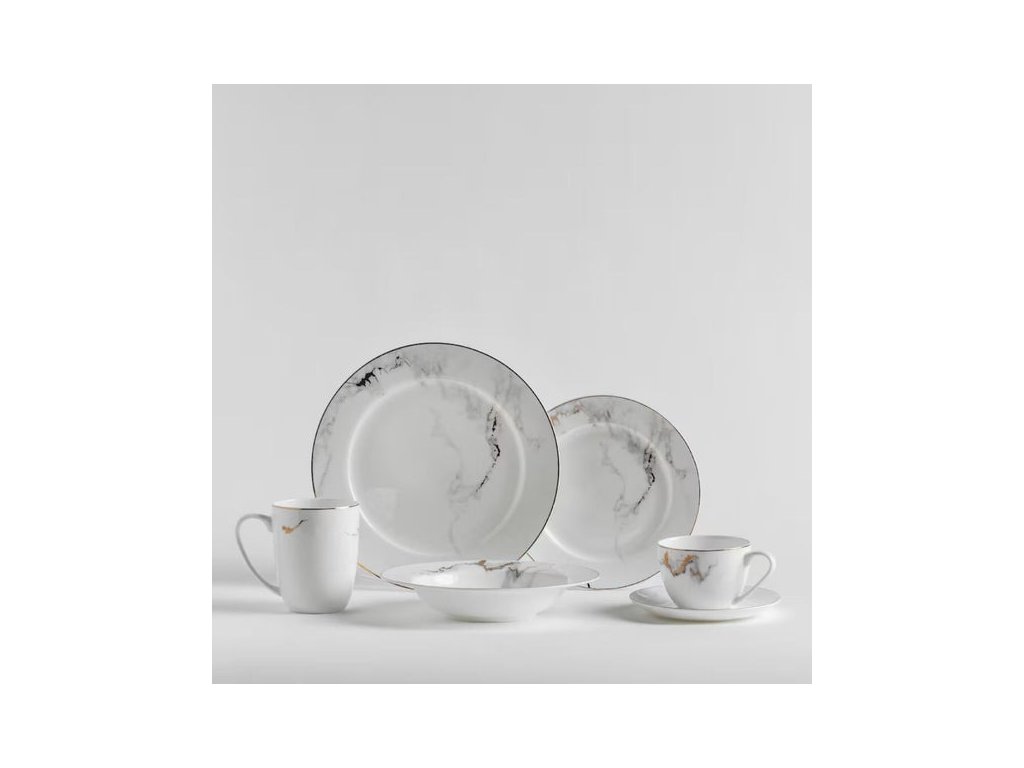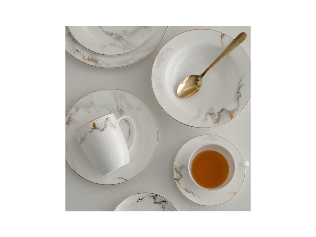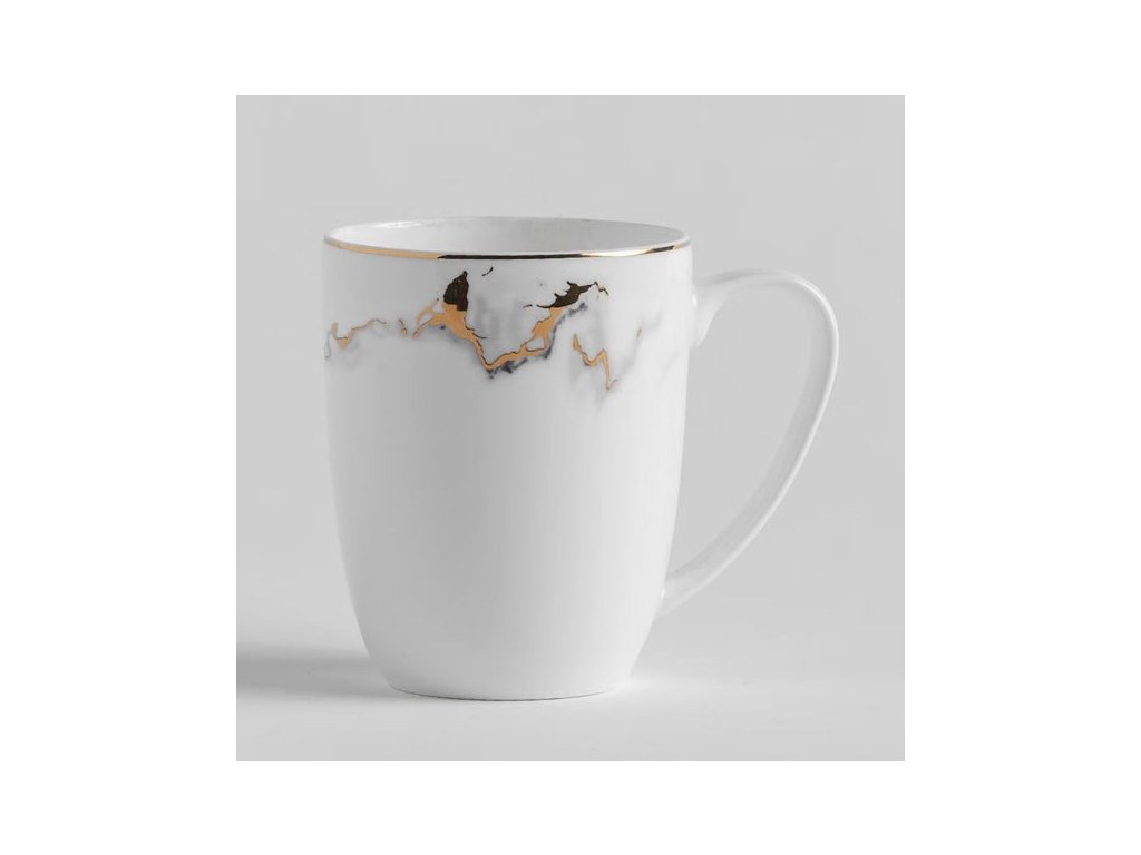 Biely štýlový hrnček MARBER s mramorovým vzorom pre milovníkov estetických predmetov. Jeho objem je 430 ml, veľmi dobrá kapacita. Pri opakovanom používaní si zachová farbu a potlač a bude svojho majiteľa tešiť každý deň. Hrnček vyrobený z nového kostného porcelánu udrží teplotu nápoja dlho, nedovolí mu príliš rýchlo vychladnúť a zachová arómu a chuť nápoja. Klasický tvar hrnčeka umožňuje, aby sa riad hodil do akéhokoľvek interiéru vašej kuchyne. Večerné stretnutia s blízkymi alebo veľká oslava budú v každom prípade s takýmto vynikajúcim riadom nezabudnuteľné.