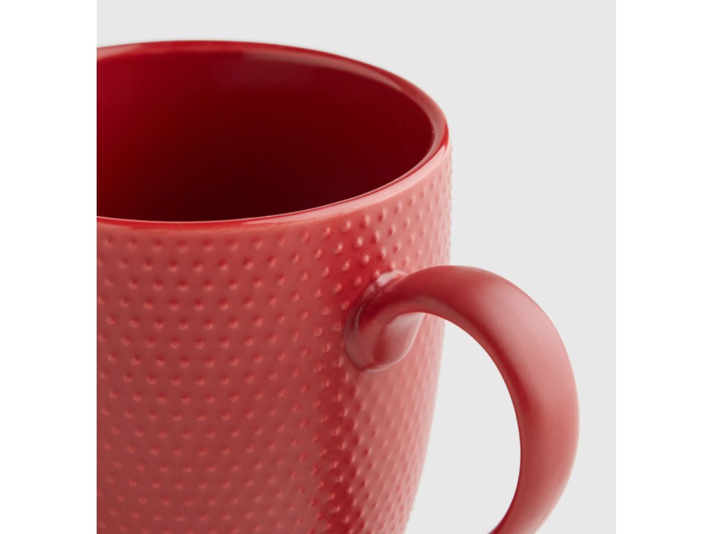 Elegantný hrnček vyrobený z porcelánu v intenzívnej červenej farbe. Vďaka svojmu objemu 360 ml je ideálny na obľúbenú kávu, čaj či iné nápoje. Jedinečný povrch a klasický tvar zaisťujú pohodlné používanie a výrazná farba dodá energiu a štýl každému ránu. Je ideálny na každodenné použitie, ale aj ako efektný prvok stolového riadu.