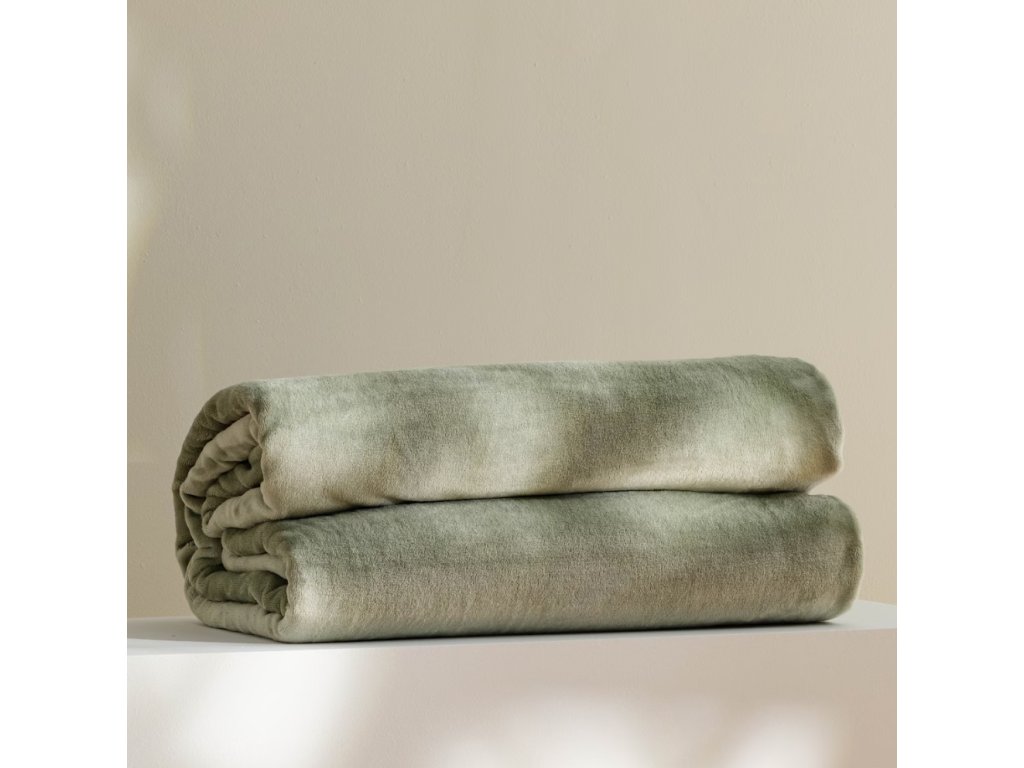 Pastelová, šálková (jemná) zelená prikrývky Floss s ľahkým leskom okamžite priťahuje pozornosť a buduje v interiéri atmosféru bezstarostného relaxu. Minimalistická, hladká forma bez viditeľného prešívania a s decentne dokončenými okrajmi evokuje harmóniu a jednoduchosť inšpirovanú prírodnou krásou. Nadýchanosť a mäkkosť sú rozjasnené jemným tieňovaním, vďaka čomu sa prikrývka skvele prezentuje tak na pohovke, ako aj ako prehoz na posteľ. Hodí sa do estetiky moderných, škandinávskych, ako aj klasickejších a útulných domov. Je to detail, ktorý podčiarkuje všímavosť v každodenných voľbách a dôraz na kvalitu okolia.