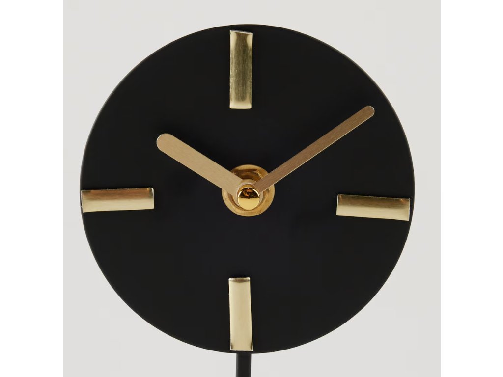 Elegantné stojace hodiny v klasickej čiernej farbe sa vyznačujú moderným a minimalistickým dizajnom. Sú ideálnym akcentom na pracovný stôl, komodu či policu a zároveň dodávajú priestoru rafinovaný štýl a funkčnosť. Čierne vyhotovenie im prepožičiava eleganciu a univerzálnosť, vďaka čomu sa dokonale kombinuje s rôznorodými interiérovými aranžmánmi. Hodiny spájajú estetiku s praktickosťou a precízny mechanizmus zabezpečuje presné ukazovanie času. Ich minimalistický dizajn z nich robí decentný, no efektný doplnok do každého moderného alebo klasického interiéru.