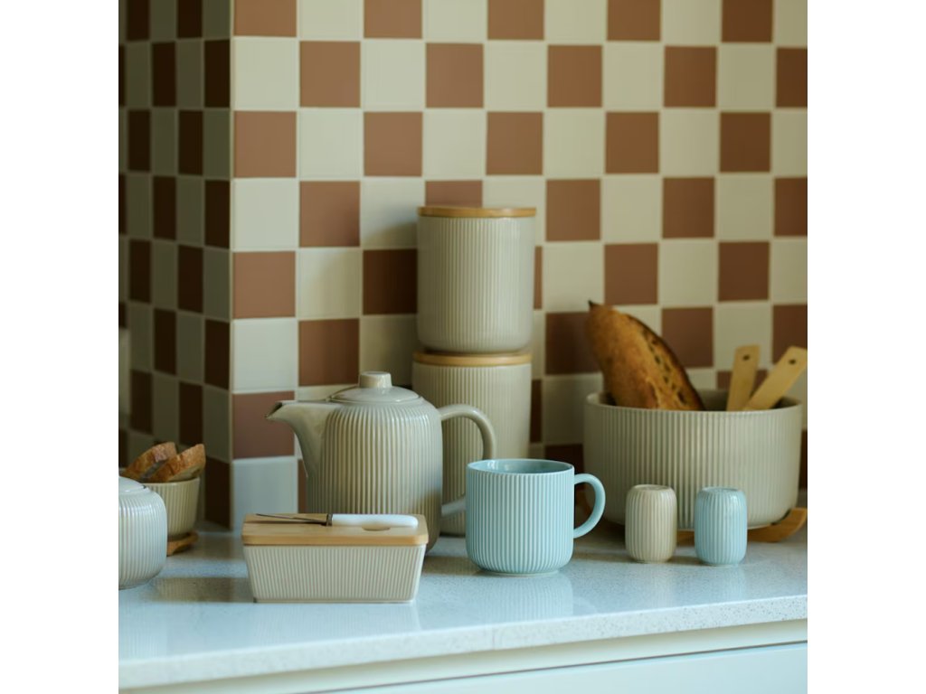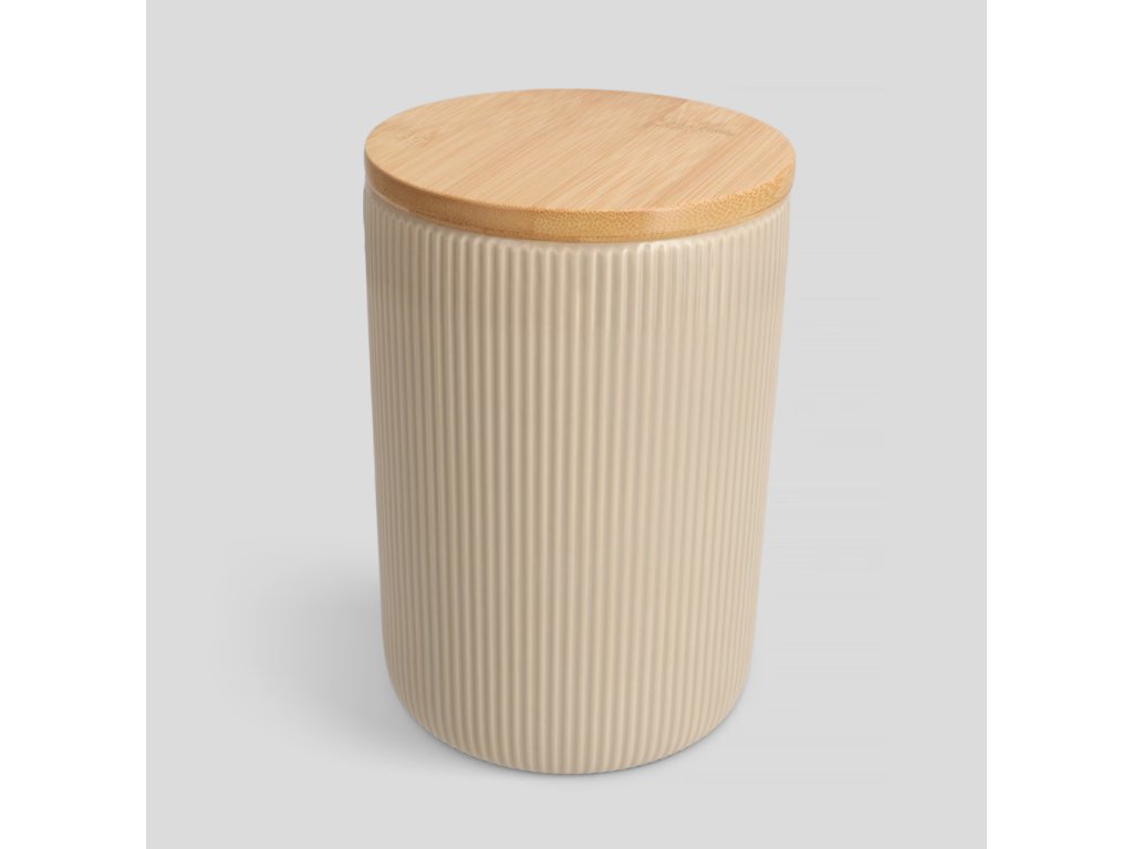 Praktická kuchynská nádoba vyrobená z tvrdého porcelánu s prídavkom prírodného bambusu a silikónu, v jemnej béžovej farbe. Ideálna na uskladnenie korenia, čaju alebo iných drobných potravín. Kombinácia porcelánu, bambusu a silikónu zaručuje odolnosť a moderný vzhľad, zatiaľ čo silikónové tesnenie zabezpečuje čerstvosť uskladnených potravín. Je to štýlový a funkčný doplnok do každej kuchyne.
