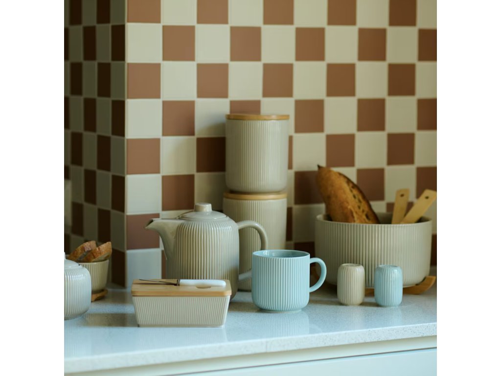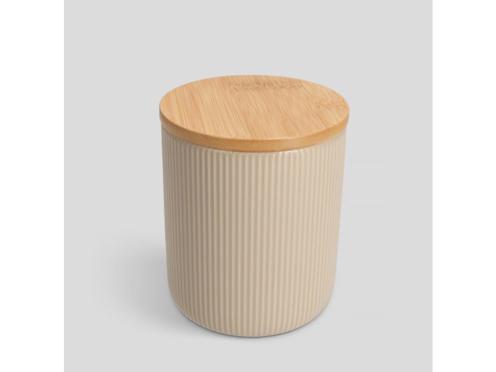 Kuchynská nádoba z tvrdého porcelánu s prídavkom bambusu a silikónu v béžovej farbe. Vynikajúca na uskladnenie korenia, cukru, čaju alebo iných drobných potravín. Elegantná kombinácia porcelánu a bambusu jej dodáva moderný vzhľad, zatiaľ čo silikónové tesnenie zaručuje tesnosť a čerstvosť obsahu. Je to praktický a štýlový doplnok do každej kuchyne.