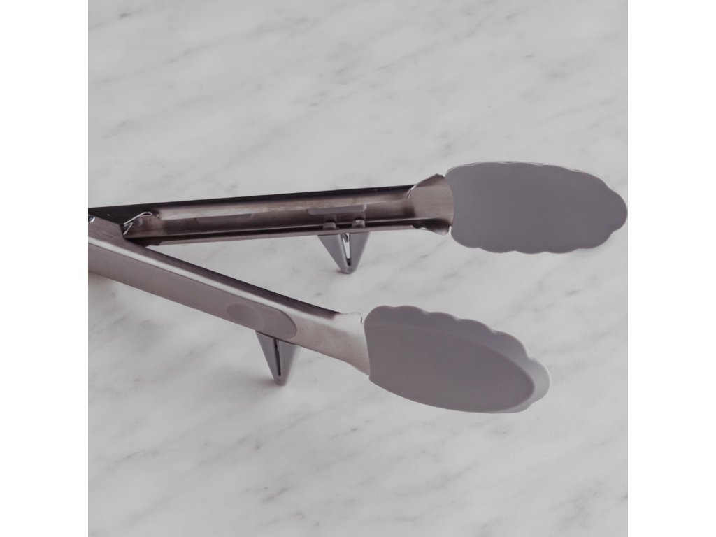 Kuchynské kliešte zo silikónu a nehrdzavejúcej ocele v elegantnej sivej farbe. Zabezpečujú pohodlné používanie a bezpečnosť počas varenia. Silikónové konce sú odolné voči vysokým teplotám, nepoškriabu povrch riadu a protišmykový úchyt z nehrdzavejúcej ocele zaručuje pevné držanie. Sú ideálne na vyprážanie, grilovanie a servírovanie pokrmov.