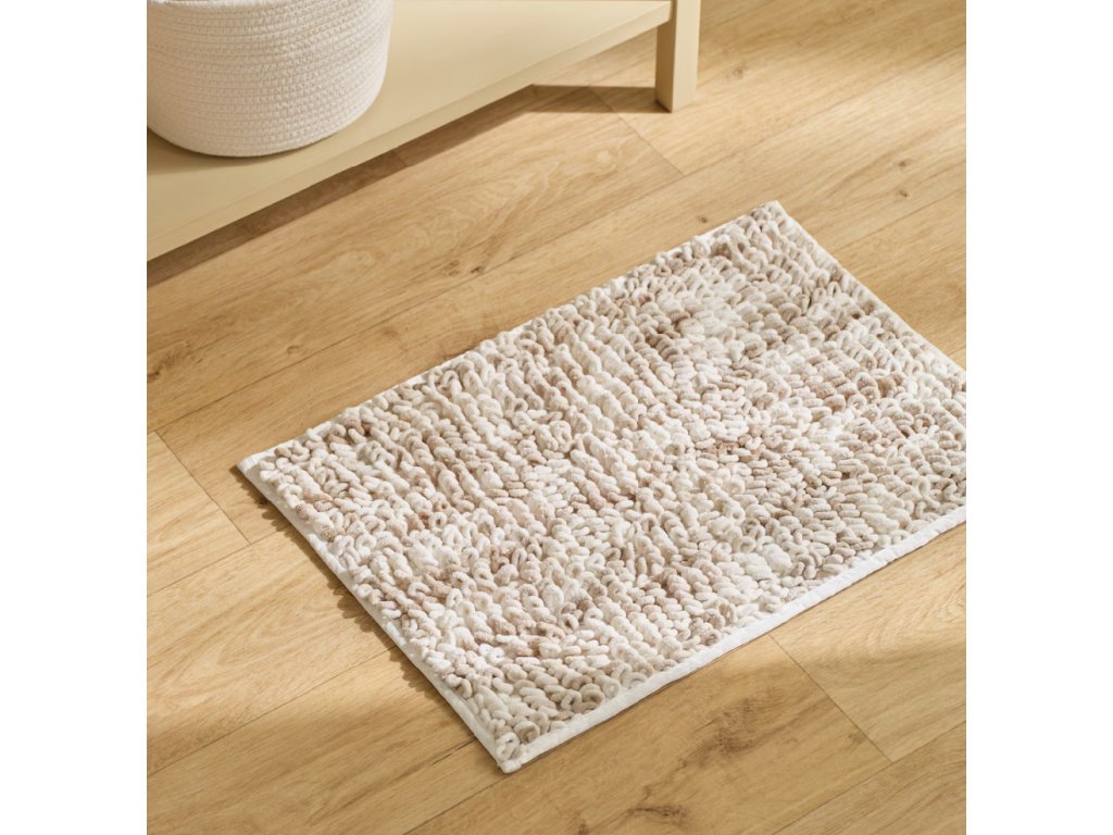 Mäkký a praktický kúpeľňový koberček vyrobený z trvácneho polyesteru v tlmenom béžovom odtieni. Rozmery 40x60 cm spôsobujú, že sa dokonale hodí pri vani, sprche alebo umývadle. Rýchloschnúci materiál zaručuje komfort používania a ľahkú údržbu. Univerzálna béžová farba vnáša do kúpeľne teplo a subtílnosť, hodiaca sa k rôznym štýlom interiérových aranžmánov.