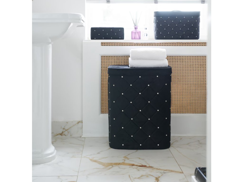 Vyrobený z vysokokvalitného zamatu, Kôš na bielizeň Diamentum je spojením praktickosti s výnimočnou estetikou.