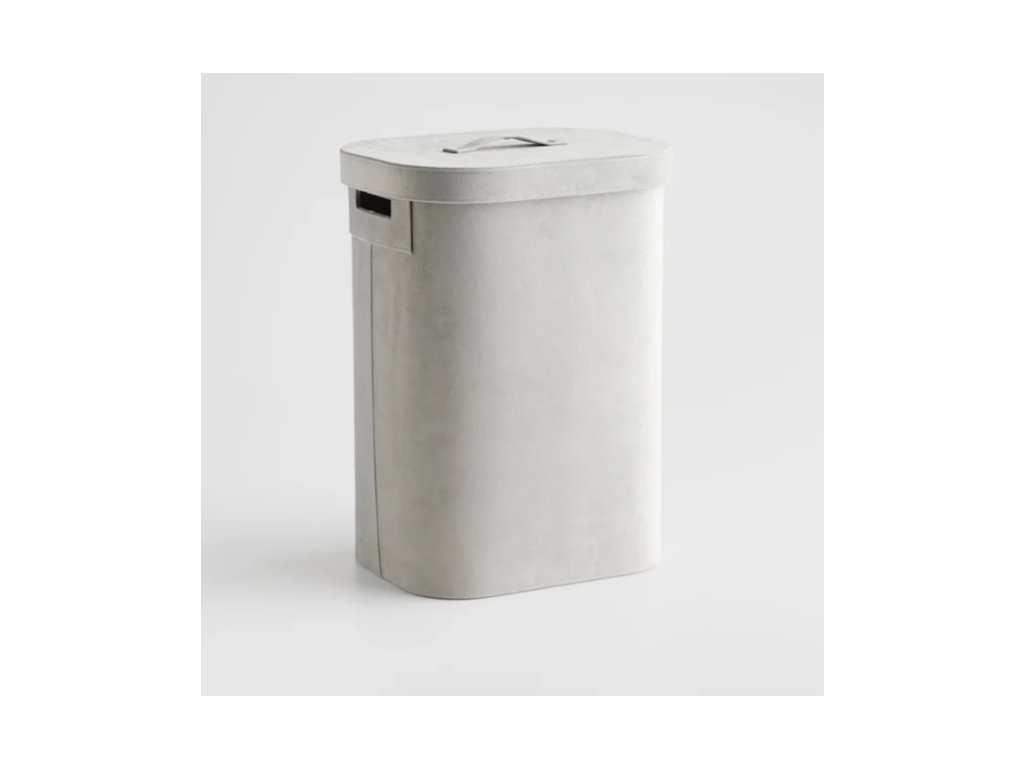 Predstavte si, že vaša kúpeľňa vyžaruje pokoj a harmóniu. Kôš na bielizeň Lantos, zabalený v mäkkom zamatu v jemnom svetlosivej farbe, diskrétne ukrýva oblečenie čakajúce na pranie. Elegancia, funkčnosť a poriadok – to je to, čo ponúka tento jedinečný kôš, ktorý premení vašu kúpeľňu a dodá jej nádych sofistikovanosti a štýlu.