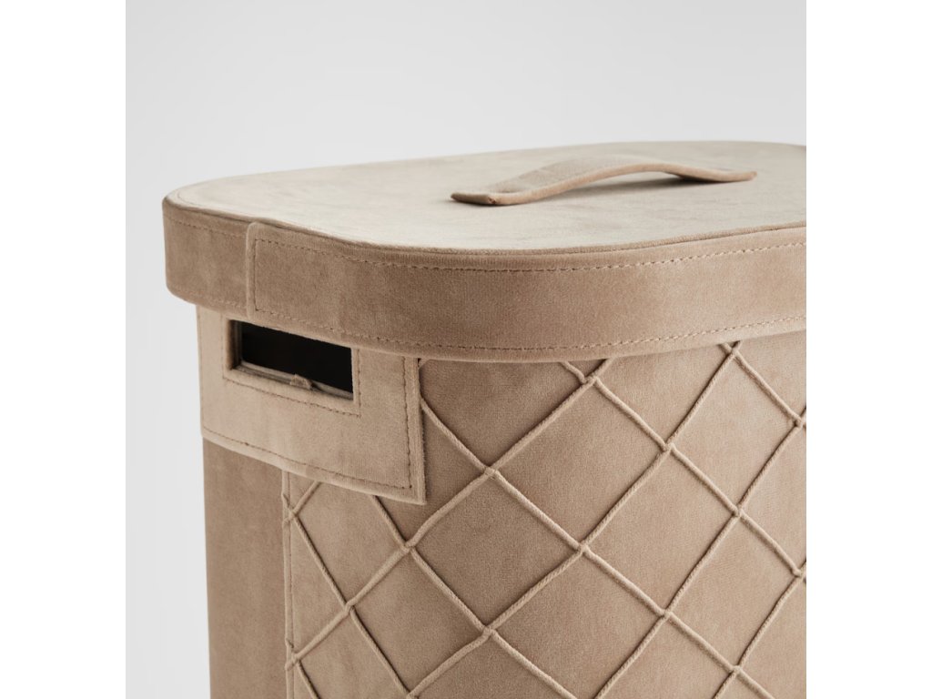Kôš na bielizeň Pique je vyrobený z vysokokvalitného zamatu, ktorý mu dodáva výnimočnú mäkkosť a odolnosť. Zamatový povrch je príjemný na dotyk a dodáva košu luxusný charakter. Dodatočné výstuhy z papiera zabezpečujú stabilitu a trvácnosť konštrukcie.