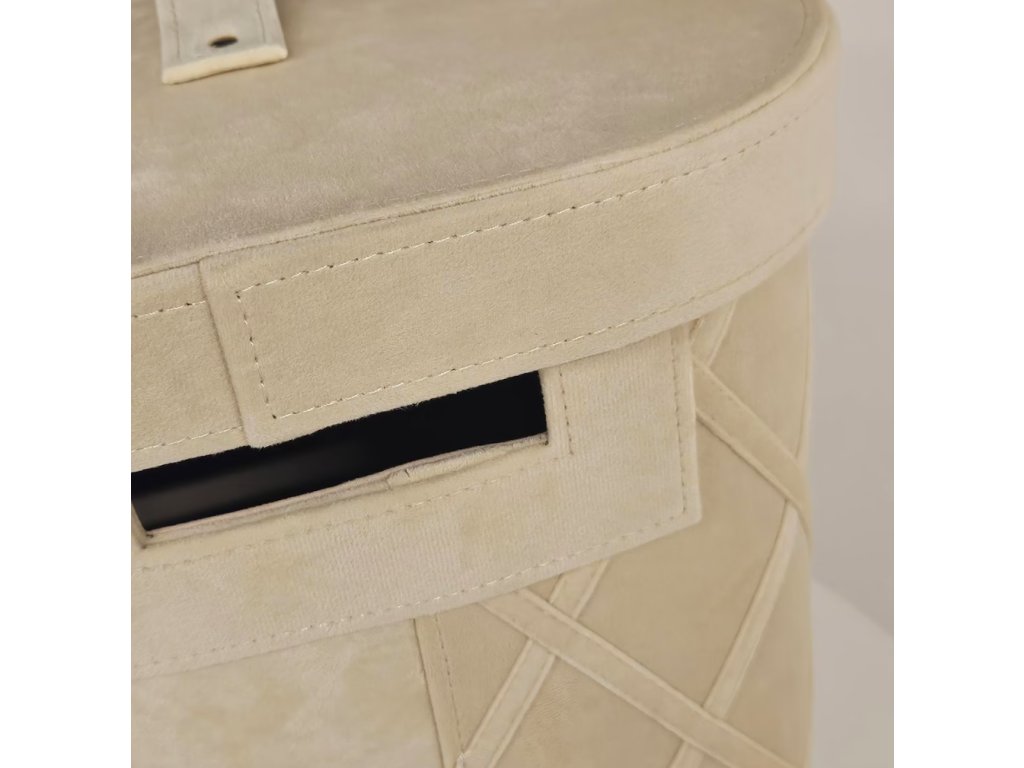 Praktický kôš na bielizeň vyrobený z polyuretánu, materiálu MDF a polyesteru v elegantnej béžovej farbe. Pevná konštrukcia zaisťuje trvácnosť, a neutrálny odtieň sa dokonale hodí k rôznym aranžmánom interiérov, zároveň ponúkajúc pohodlie a štýl pri uskladnení oblečenia.