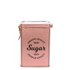 Praktická hranatá kovová dóza s nápisom "Sugar - Premium Quality" je ideálna na štýlové a bezpečné uskladnenie cukru. Dóza má prasknutý/popraskaný vzhľad povrchu, čo jej dodáva vintage šarm. Priehľadné viečko so zlatým patentným uzáverom umožňuje ľahkú kontrolu obsahu a zároveň zabezpečuje vzduchotesné uzavretie, aby váš cukor zostal dlho čerstvý. Skvelý doplnok do každej kuchyne alebo ako darček pre milovníkov kávy a čaju.