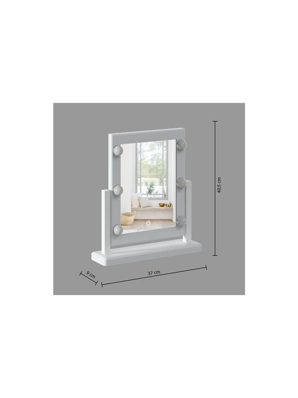 Premeňte svoju každodennú kozmetickú rutinu na hviezdny zážitok. Toto ikonické zrkadlo v štýle "Hollywood" prináša profesionálne osvetlenie priamo na váš toaletný stolík. Vďaka čistému bielemu dizajnu a veľkej odrazovej ploche je nielen praktickým pomocníkom, ale aj dominantným dekoratívnym prvkom.