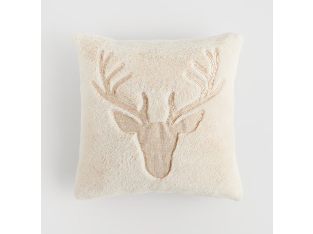 Jemná, krémová farba ekri sa ideálne hodí k zariadeniu v modernom, škandinávskom i klasickom štýle. Výnimočnou ozdobou je decentná aplikácia hlavy jeleňa s parožím, ktorá odkazuje na motívy prírody a dokonale zapadá do módnej, sviatočnej atmosféry. Kožušinová obliečka Antleris je spoľahlivý spôsob, ako vytvoriť útulnú atmosféru v obývačke, spálni alebo detskej izbe, a je tiež skvelým nápadom na darček.