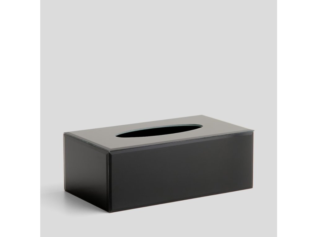 Elegantný zásobník na vreckovky/servítky vyrobený zo skla v štýlovej čiernej farbe. Jeho moderný dizajn a minimalistická forma sa dokonale hodia k rôznym aranžmánom interiéru, dodávajúc im subtílnu eleganciu. Ideálny do kúpeľne, spálne či kancelárie, umožňuje pohodlné a estetické uskladnenie vreckoviek/servítok. Trvácny a ľahko udržiavateľný v čistote, predstavuje funkčný dekoračný prvok.
