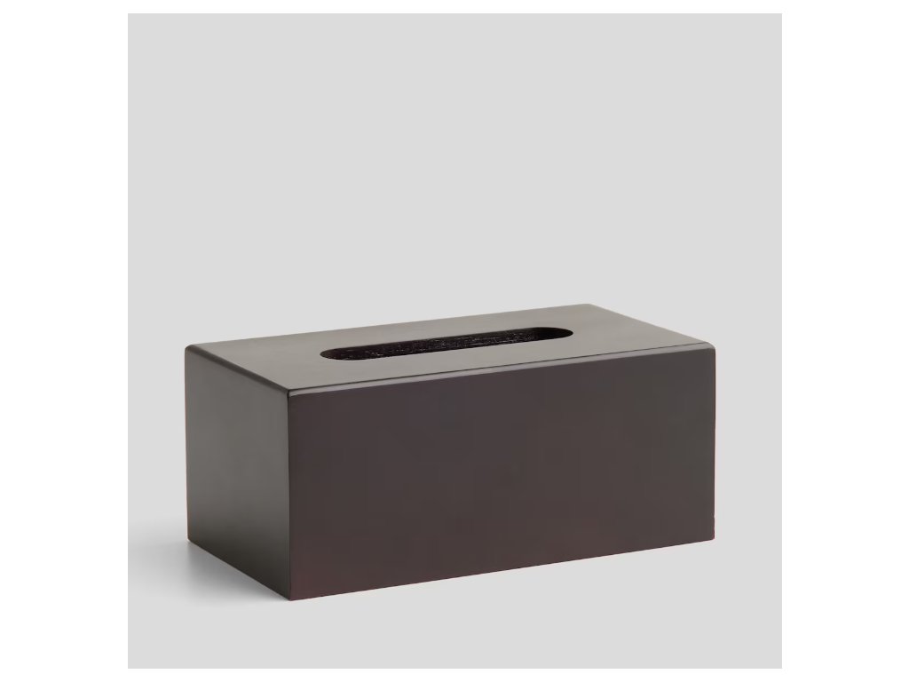 Štýlový box na vreckovky z materiálu MDF v elegantnej hnedej farbe. Jeho jednoduchý, a pritom efektný tvar dokonale zapadne do rôznych interiérov, ktorým dodá teplo a noblesu. Tento praktický doplnok do kúpeľne, spálne alebo obývačky umožňuje pohodlné a estetické uskladnenie vreckoviek. Je to ideálna voľba pre interiér v klasickom, škandinávskom alebo modernom štýle.