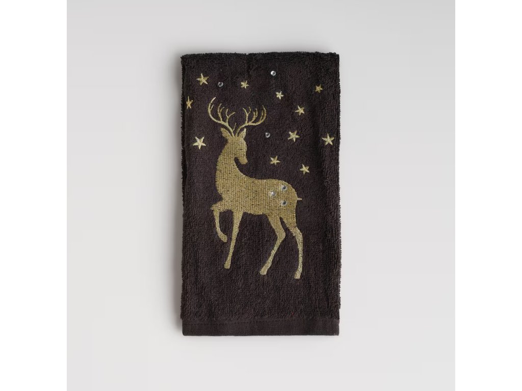 Čierny odtieň utierky je doplnený zlatým motívom soba a hviezdičiek, ozdobených subtílnym leskom. Je to univerzálna voľba tak pre moderné, ako aj klasické kuchynské aranžmány, a sviatočný akcent spôsobuje, že sa skvele osvedčí aj ako nápad na darček alebo dekoratívny detail v kuchyni na špeciálne príležitosti.