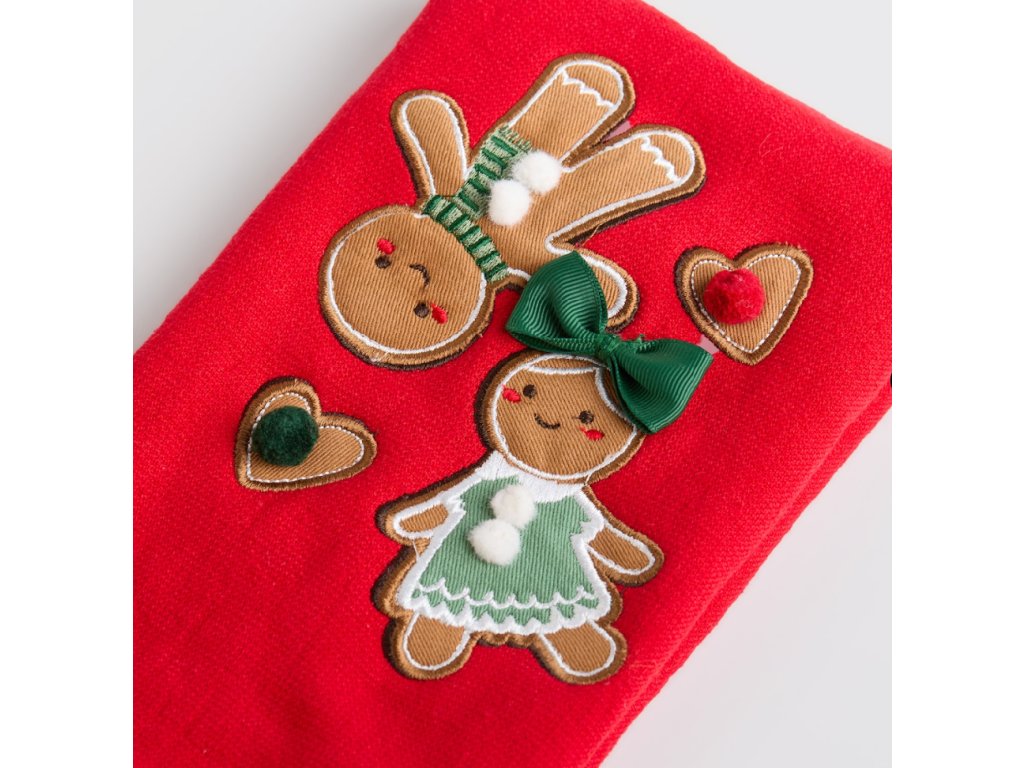 Intenzívne červená utierka, ozdobená aplikáciami perníkových panáčikov a srdiečok, vnáša do interiéru sviatočnú atmosféru. Starostlivo vyhotovené detaily a farebnosť odkazujúca na tradíciu Vianoc ju robia estetickým doplnkom k moderným, klasickým a rustikálnym kuchynským aranžmánom. Je to tiež skvelý nápad na praktický a štýlový darček pre blízkych.