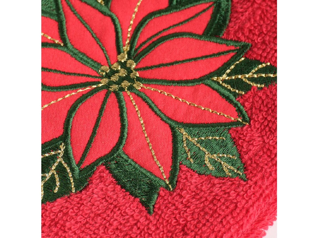 Dodajte kuchyni lesk a sviatočnú atmosféru vďaka kuchynskej utierke poinsetta 37x50 cm. Táto praktická, intenzívne červená utierka s vyšívanou vianočnou hviezdou (poinsettia) účinne podčiarkne výnimočný charakter vášho domu, zaisťujúc pohodlie a štýl každý deň.
