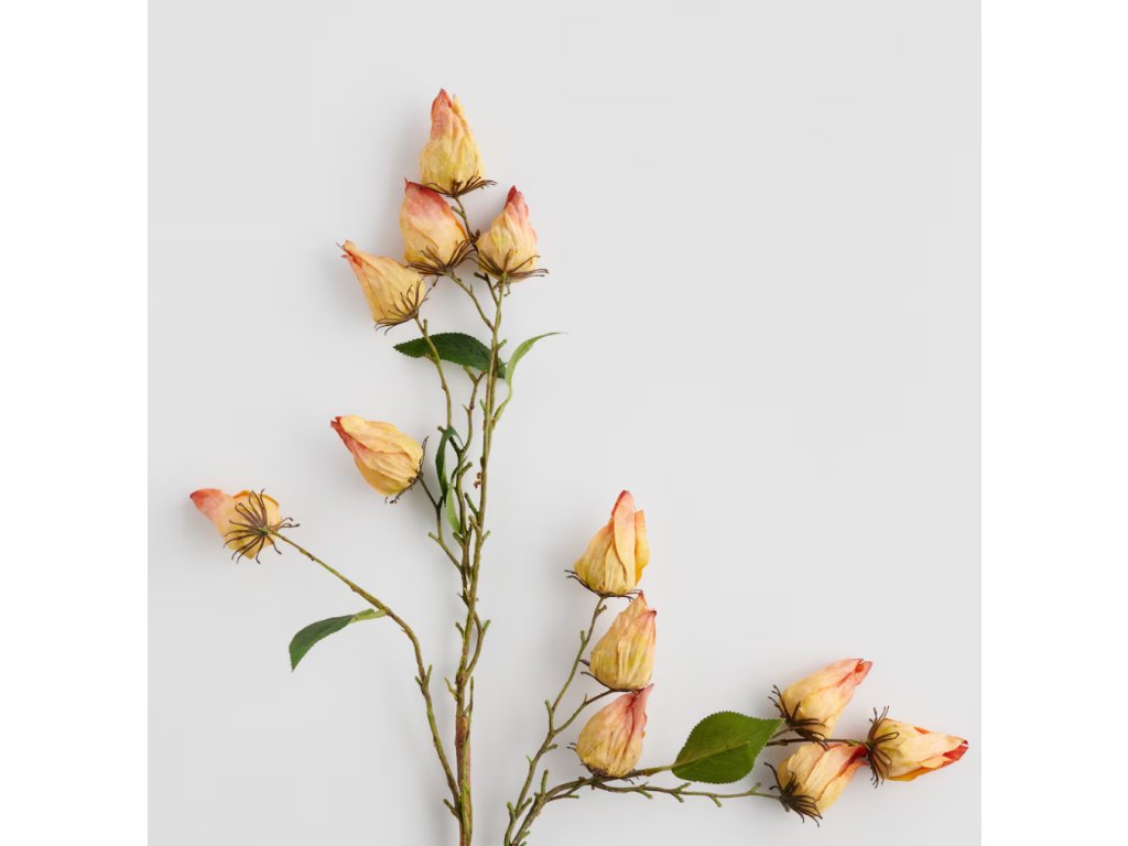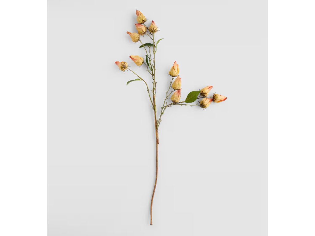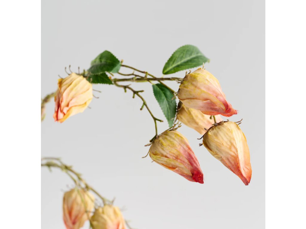 Jemné, svetlopomarančové púčiky kvetov Eglantino dodajú interiéru decentný, romantický nádych. Kombinácia prirodzeného tvaru s elegantnými farbami robí z kvetu ideálny doplnok do klasického aj moderného interiéru. Eglantino je jedinečný dekoračný prvok, ktorý oživí každú miestnosť, a tiež skvelý tip na darček.