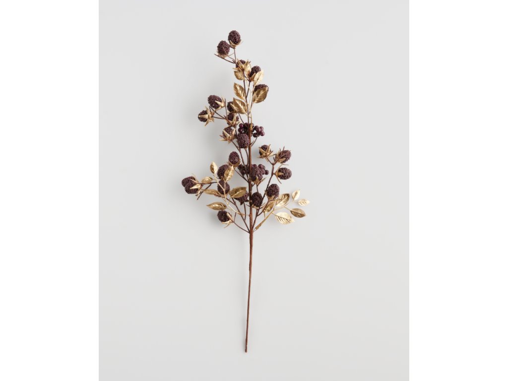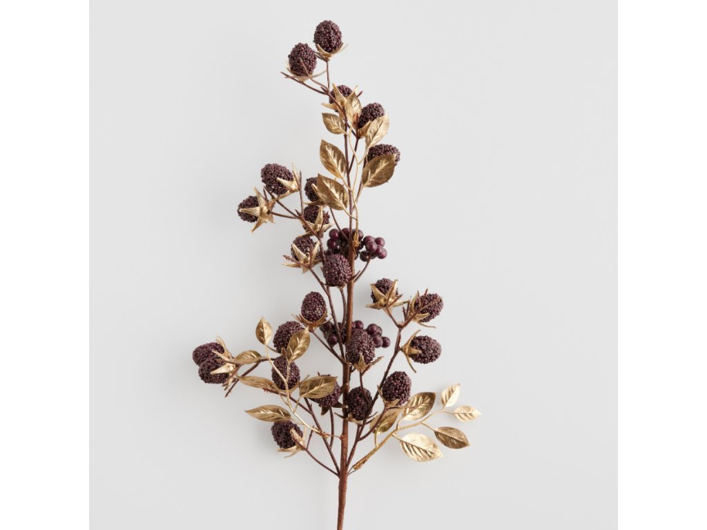 Brambly je dekoratívna kytica, ktorá verne imituje prírodné vetvičky s plodmi, pričom si zachováva trvácnosť a bezúdržbový charakter. Je vyrobená z plastu, peny a papiera, vyznačuje sa precíznym spracovaním a jemnou hrou farieb. Fialové plody a zlatisté listy vytvárajú pôsobivú, no zároveň tlmenú kompozíciu.