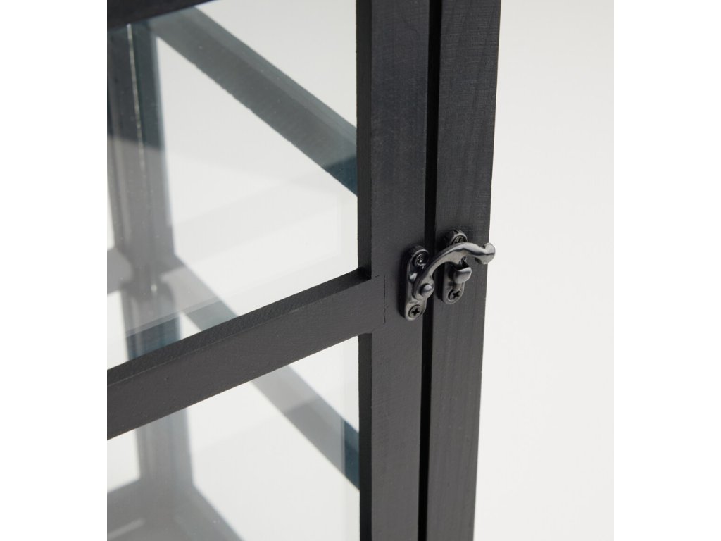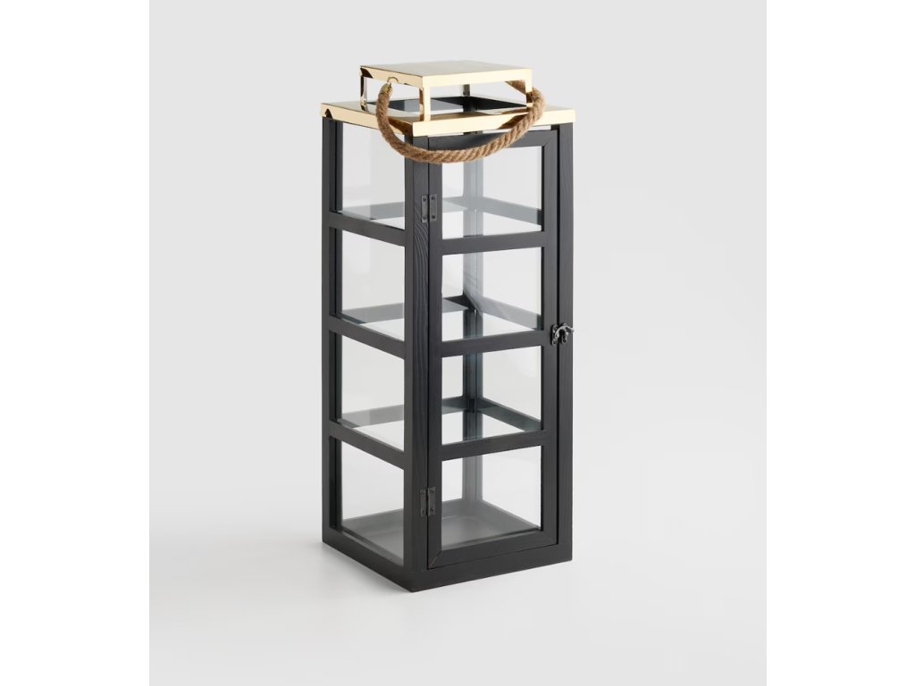 Štýlový lampáš vyrobený z kombinácie prírodného dreva v čiernej farbe, priehľadného skla a odolného železa. Táto unikátna kombinácia materiálov mu dodáva surový a industriálny charakter, ktorý sa dokonale hodí do moderných aj loftových interiérov. Presklené steny účinne chránia plameň sviečky a pevná konštrukcia zaručuje stabilitu a dlhú životnosť. Ideálny na vytvorenie útulnej atmosféry v domácnosti, na terase alebo v záhrade.
