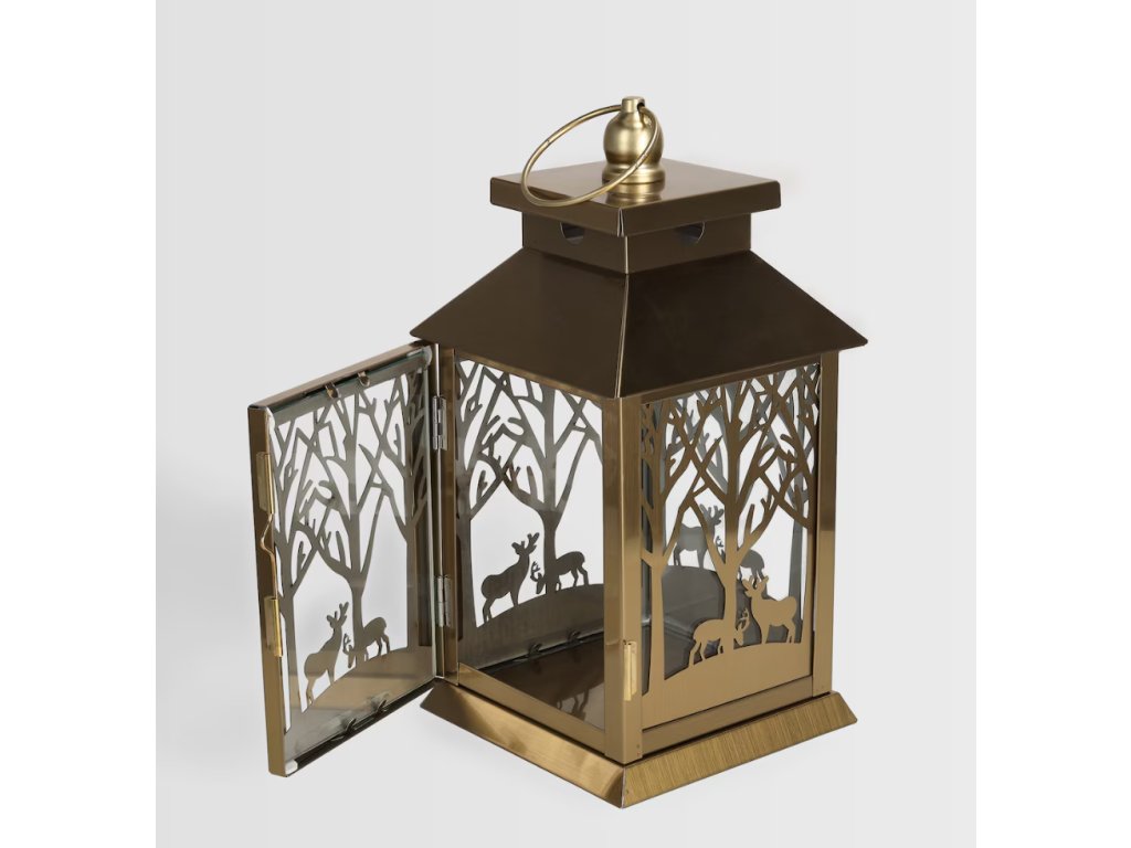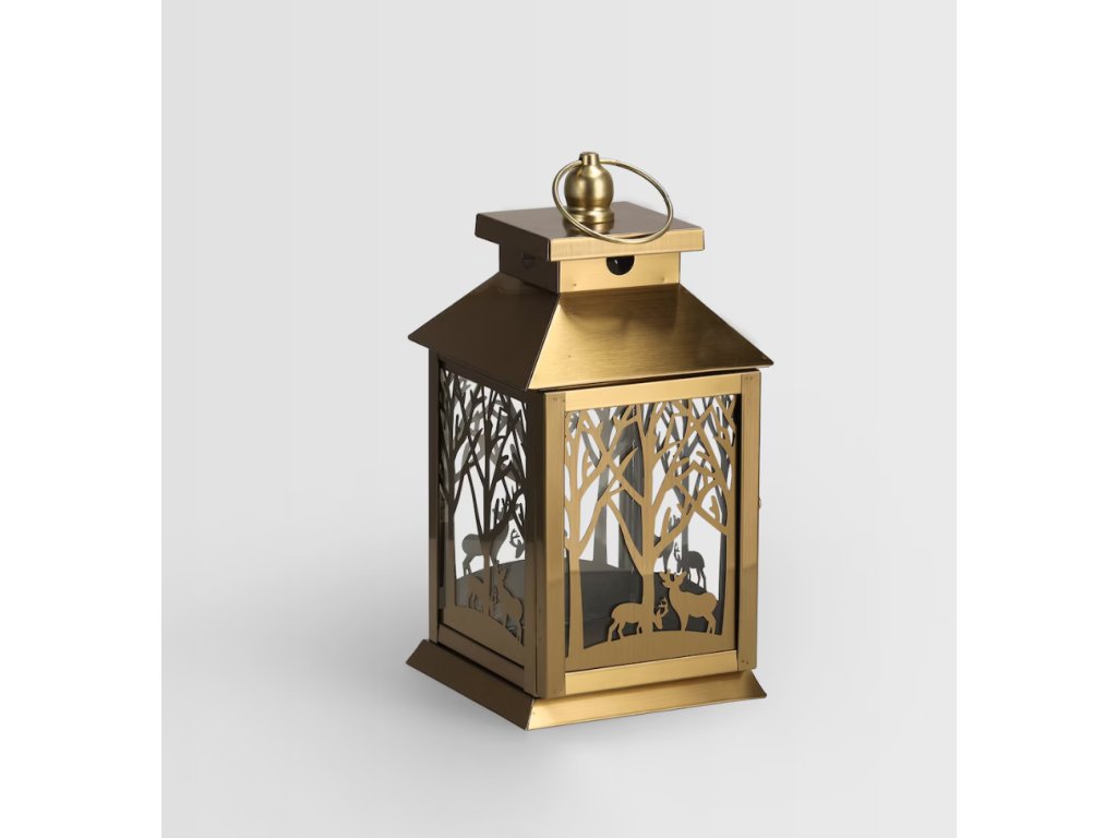 Zlatá farba, laserom vyrezávaný motív jeleňa a lesa a geometrická silueta robia z tohto lampáša výnimočnú ozdobu moderných, sviatočných a klasických aranžmánov. Dekoratívne výrezy krásne rozptyľujú svetlo, vytvárajúc magickú a útulnú atmosféru – ideálnu do obývačky, na terasu alebo balkón. Lampáš Dearno sa skvele hodí aj ako efektný darček na výnimočnú príležitosť, najmä počas sviatočného obdobia.