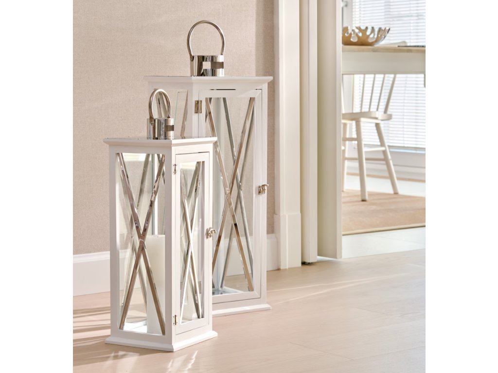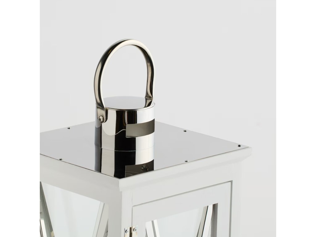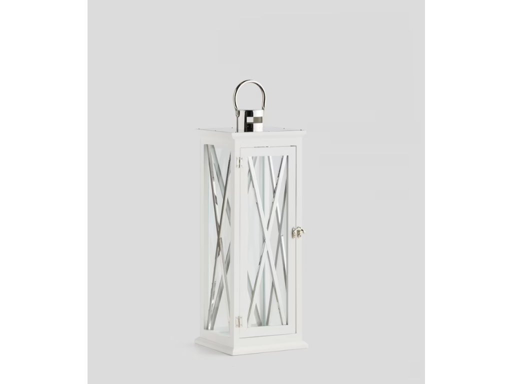 Lampión z dreva v bielej farbe s výškou 55 cm je štýlovým a funkčným dekoračným prvkom. Je ideálny na vytvorenie útulnej atmosféry doma aj vonku a vďaka svojmu klasickému dizajnu sa dokonale hodí do rôznych interiérových usporiadaní.