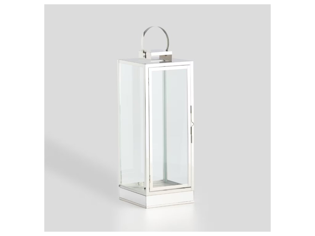 Štýlový lampión z nehrdzavejúcej ocele a skla v elegantnej striebornej farbe spája funkčnosť s rafinovanou estetikou. Vďaka modernému dizajnu a precíznemu spracovaniu sa dokonale hodí ako dekoračný prvok na terasu, balkón alebo do interiéru. Je ideálny na vytvorenie náladového osvetlenia pomocou sviečok. Pevné materiály zaručujú odolnosť a trvácnosť voči poveternostným vplyvom.