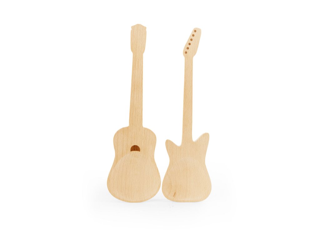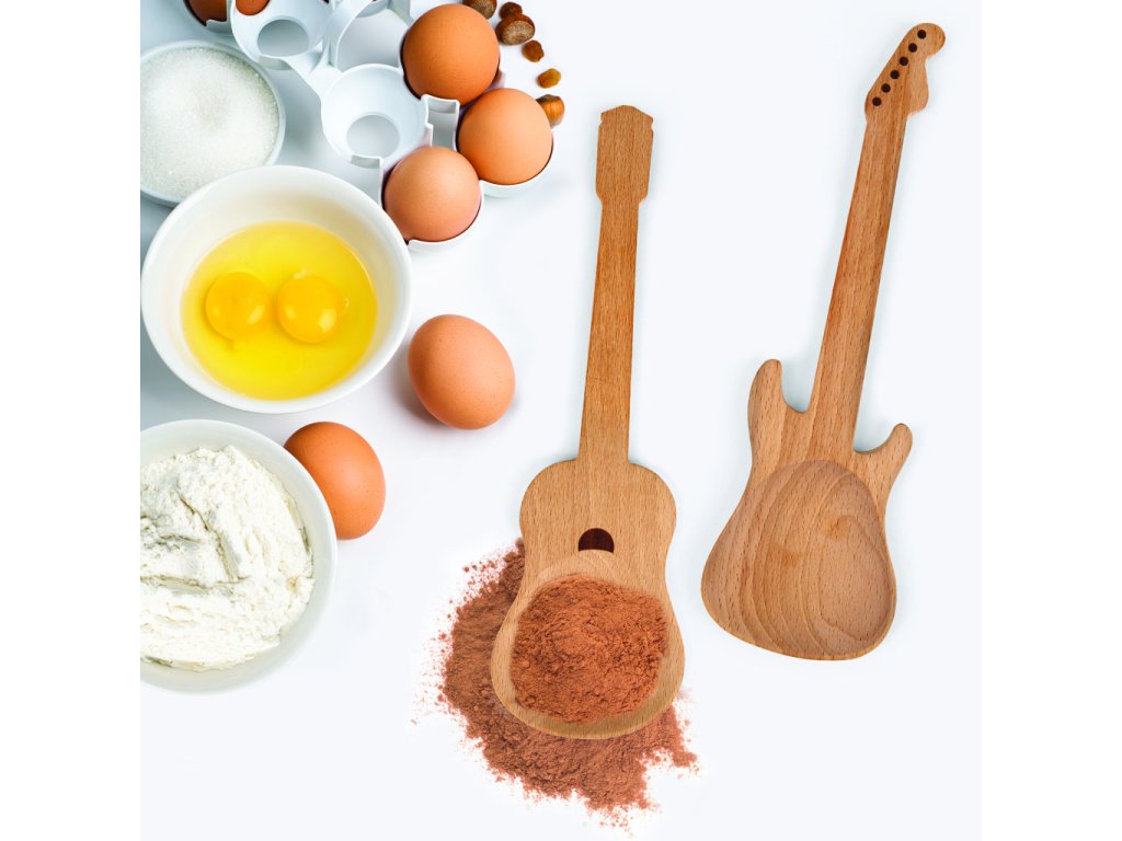Tieto dve jedinečné lyžice v tvare gitár prinesú do vašej kuchyne trochu hudobnej zábavy. Sú vyrobené z bukového dreva, vďaka čomu sú nielen štýlové, ale aj odolné a bezpečné na použitie s nepriľnavým riadom.