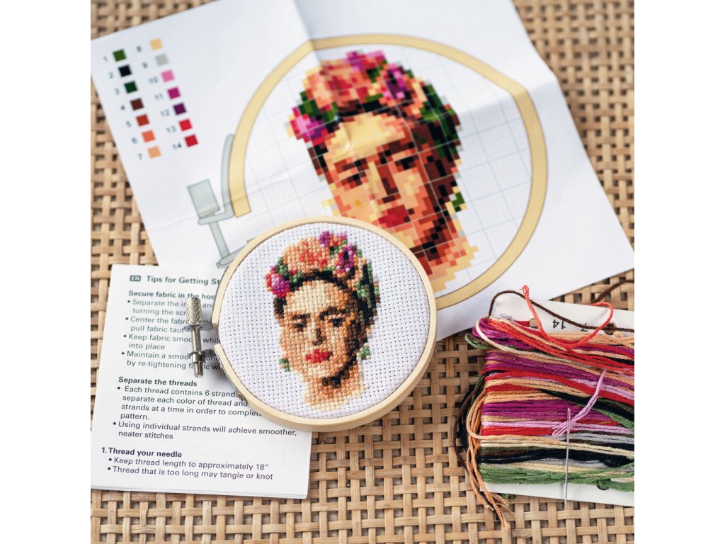 Oddýchnite si doma alebo v práci s mini-výšivkou s motívom legendárnej Fridy Kahlo.
