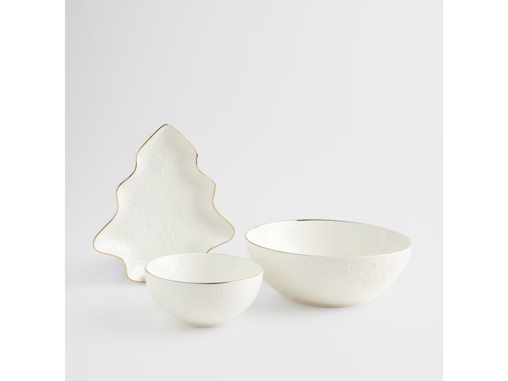 Predstavte si magickú, sviatočnú atmosféru, keď na stole kraľuje Misa Frostingo. Jej jemná, biela farba a decentný vzor snehových vločiek vnášajú do interiéru harmóniu a eleganciu, zatiaľ čo zlaté vyhotovenie pridáva dotyk luxusu. Misa Frostingo je ideálna nádoba na servírovanie sviatočných pochúťok, ktorá očarí vašich hostí.