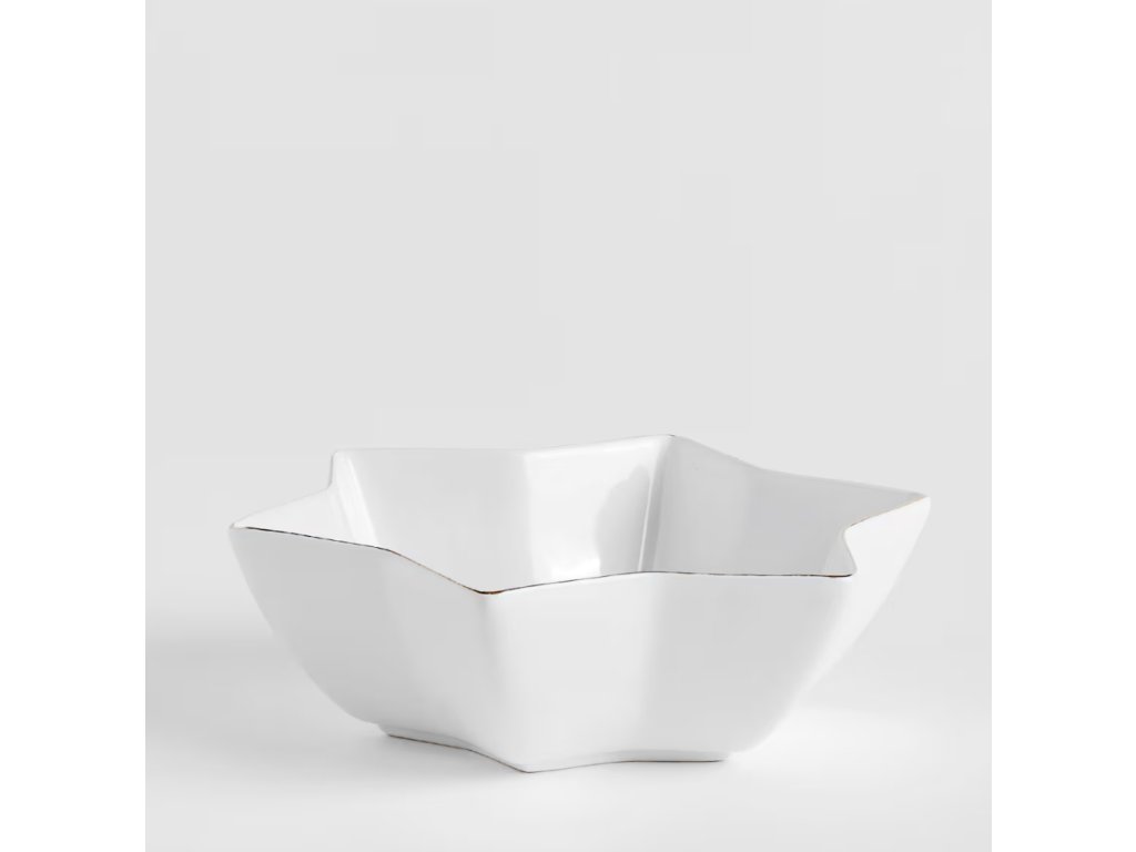Dodajte svojmu stolu hviezdny lesk s touto elegantnou miskou z dolomitu. Miska v čistom bielom prevedení s precíznym tvarovaním do podoby hviezdy a decentným zlatým lemovaním na okraji je dokonalou kombináciou jednoduchosti a šiku. Ideálna na servírovanie orieškov, sviatočného pečiva, malých dezertov alebo ako štýlový úložný priestor na drobnosti. Vďaka svojmu motívu hviezdy a elegantnému spracovaniu je miska skvelou voľbou pre vianočné a sviatočné stolovanie, ale aj ako celoročná dekorácia v štýle glamour. Miska má rozmery 26,5 x 26,5 cm a výšku 7,7 cm.