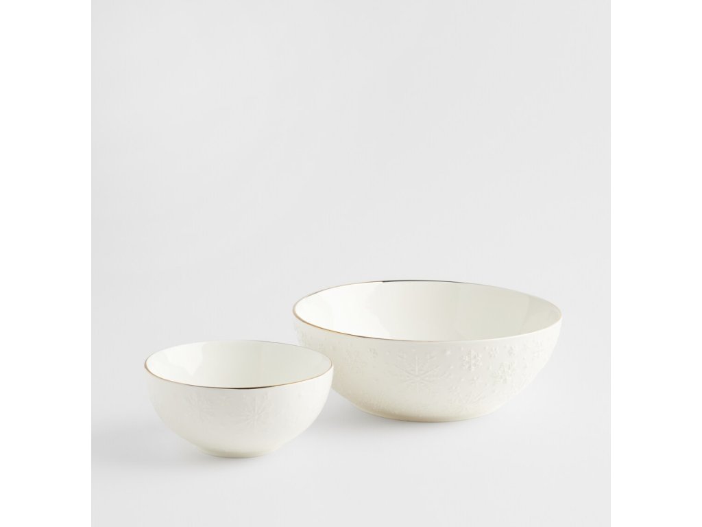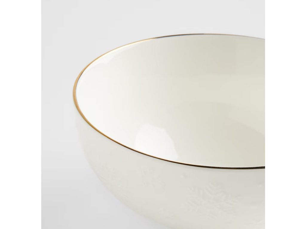 Klasický, biely porcelán ozdobený reliéfnymi snehovými vločkami a subtílnou, zlatou obrubou dodáva miske výnimočný pôvab. Ideálne sa hodí do sviatočnej aranžácie stola, a tiež bude elegantným doplnkom ku každodenným jedlám. Miska Frostingo je tiež vynikajúci nápad na darček pre blízku osobu.