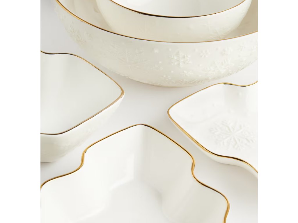 Pocíťte kúzlo Vianoc s každým jedlom vďaka Miske Frostingo. Jemná, snehobiela farba, decentný vzor snehových vločiek a zlatá obruba vnesú do vášho domova výnimočnú, sviatočnú atmosféru, plnú harmónie a elegancie.