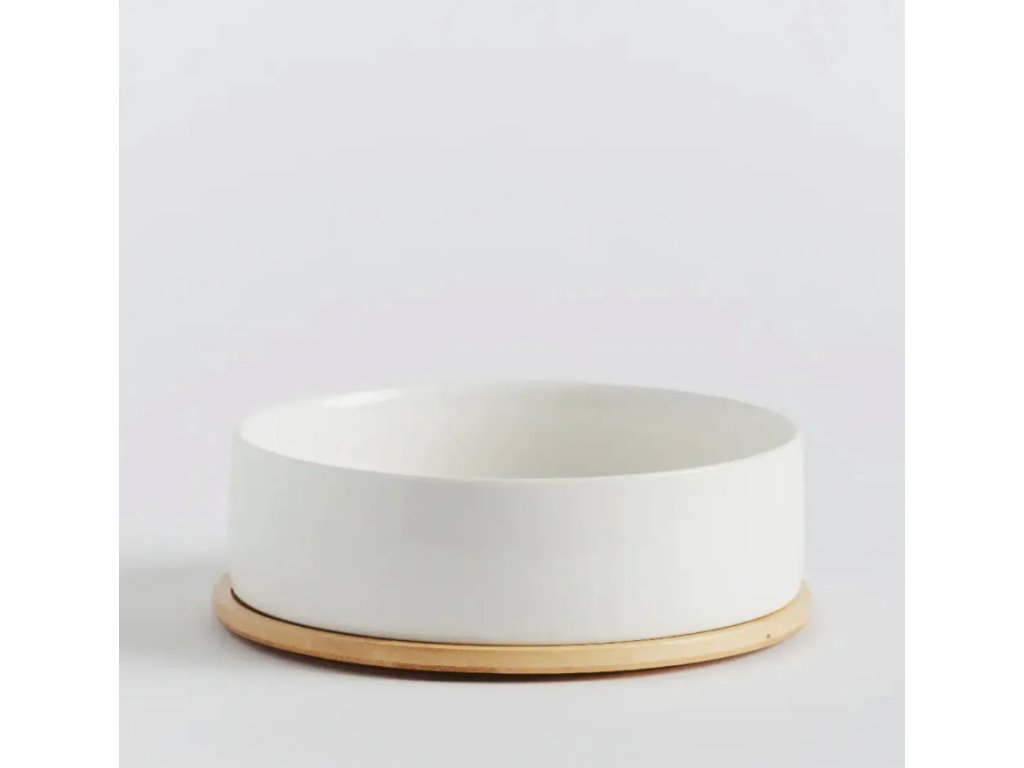 Porcelánová miska bielej farby je doplnená bambusovým podstavcom. Poslúži ako šalátová miska alebo miska na servírovanie jedál pre hostí a taktiež bude ozdobou stola.