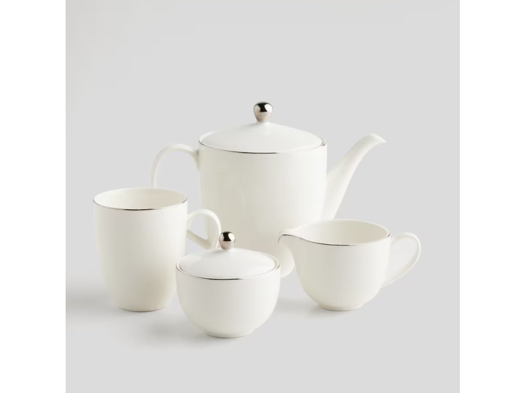 Mliečnik z porcelánu v bielej farbe so strieborným okrajom je elegantným a subtílnym doplnkom každého kávového servisu. Jeho klasický dizajn a jemné zdobenie mu dodávajú nadčasový šarm. Ideálny na podávanie mlieka, smotany alebo iných nápojov, vnesie eleganciu do každodenných chvíľ oddychu.