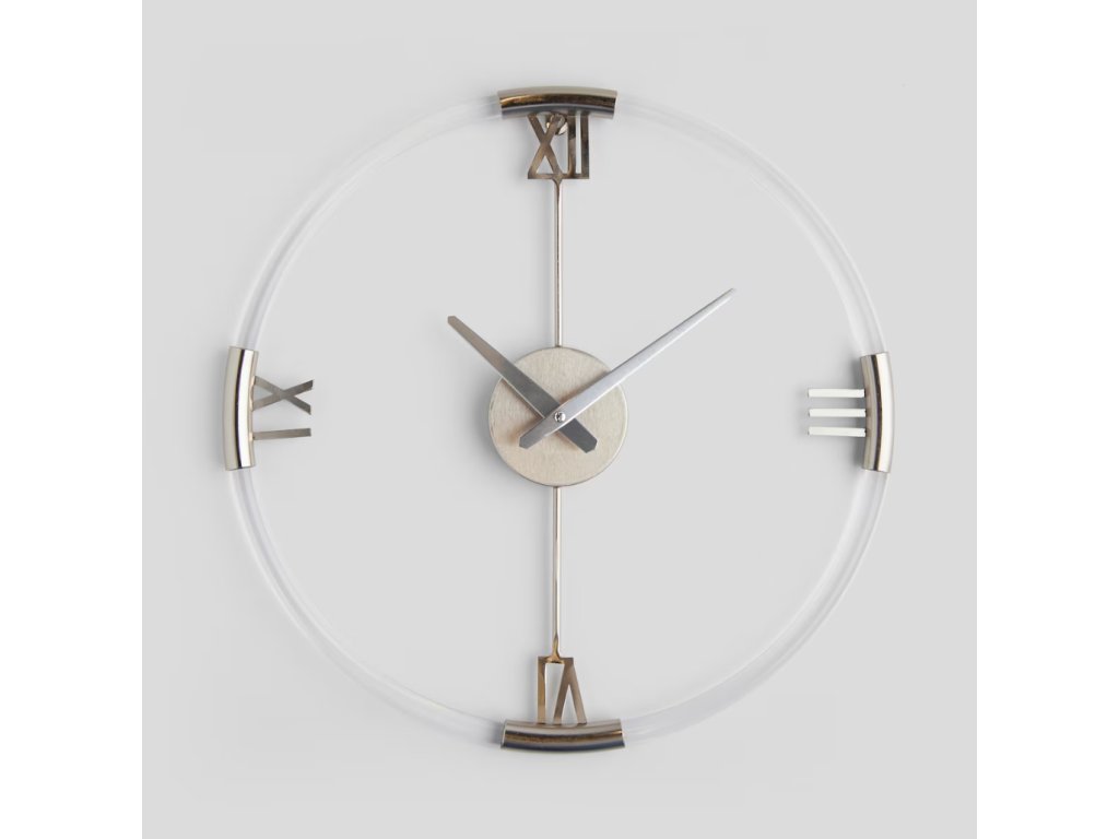 Nástenné hodiny zo železa a akrylu vo svetlej striebornej farbe a s priemerom 46 cm sú moderným a elegantným doplnkom do každého interiéru. Ich minimalistický dizajn a subtílna farba sa dokonale hodia do rôznych aranžmánov, zatiaľ čo pevná konštrukcia zaisťuje dlhú životnosť. Sú ideálnou voľbou do obývačky, kancelárie alebo predsiene, kde vnášajú štýlovú funkčnosť a presné meranie času.