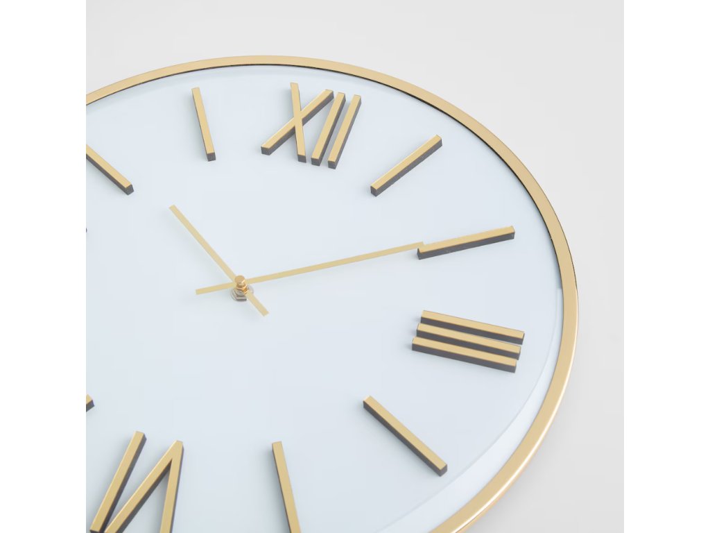 Elegantné nástenné hodiny vyrobené z kombinácie skla a kovu v efektnom, zlatom prevedení. Štýlová povrchová úprava a starostlivo prepracované detaily robia z hodín nielen funkčný, ale aj dekoratívny prvok interiéru. Zlatý rám im dodáva moderný a zároveň luxusný charakter, pričom sa ideálne hodí k aranžmánom v štýle glamour, modernom alebo klasickom. Vďaka veľkému priemeru sú hodiny dokonale viditeľné a predstavujú výrazný akcent na stene v obývačke, jedálni alebo kancelárii.