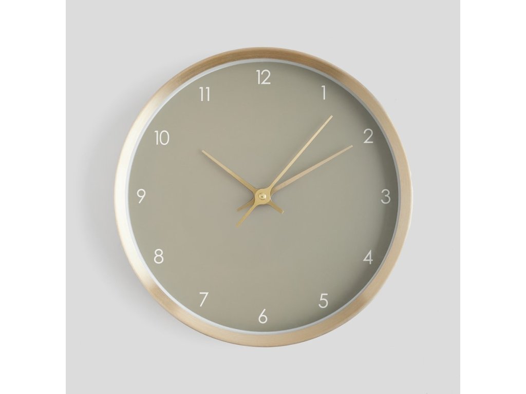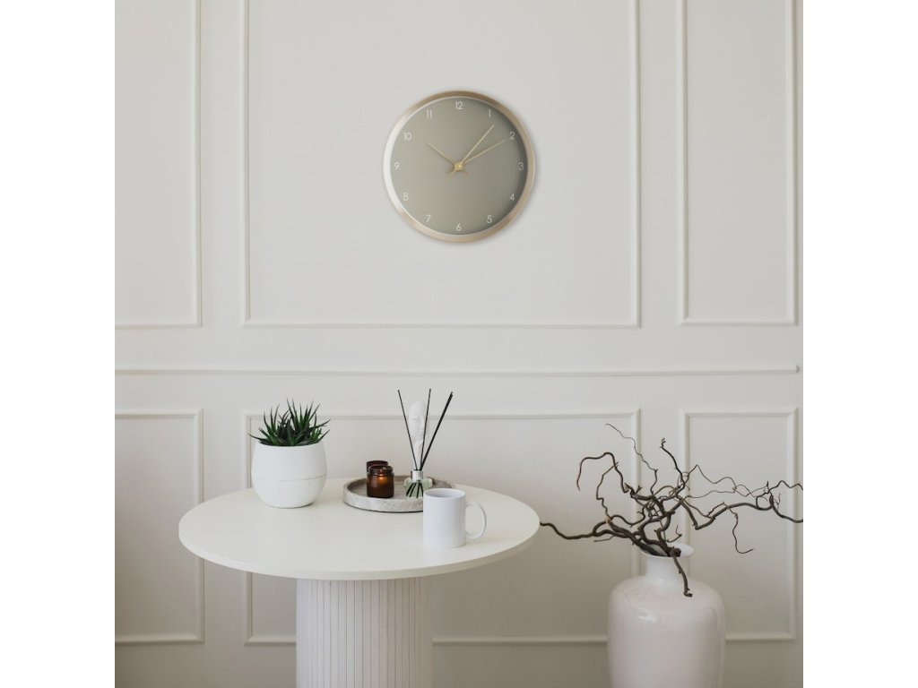 Nástenné hodiny vyrobené z plastu a hliníka v svetlozlatej farbe. Moderný a elegantný dizajn zaisťuje, že sa dokonale hodia k rôznym štýlom interiérov. Je to praktický a štýlový doplnok do obývačky, kuchyne alebo kancelárie.
