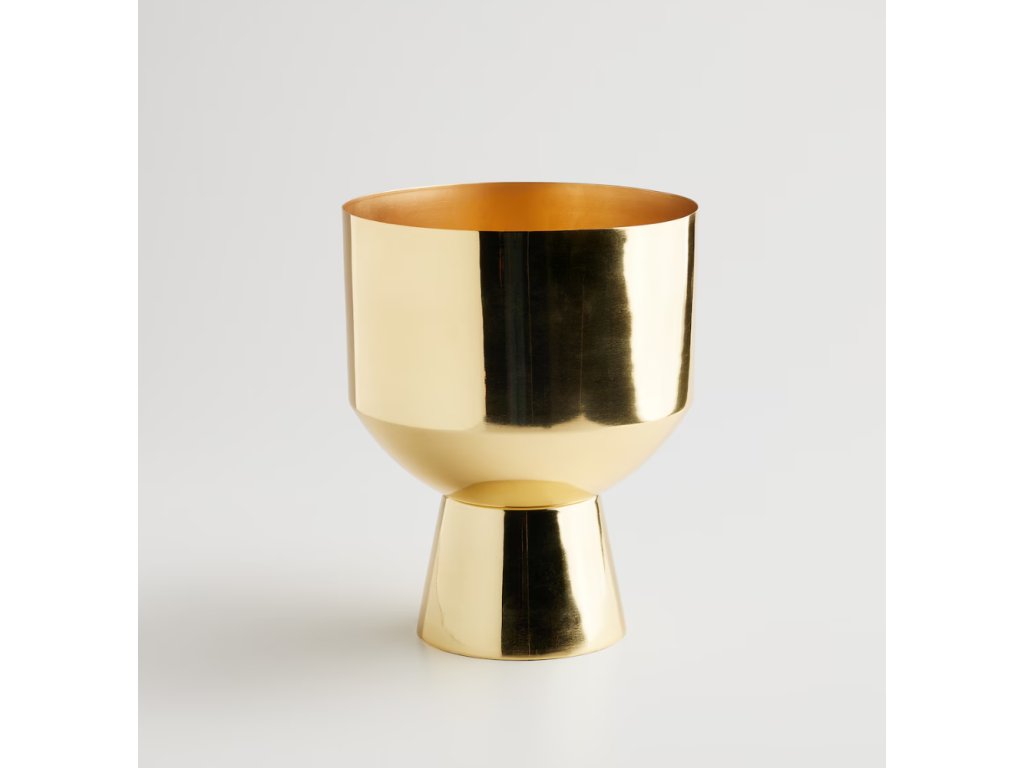 Elegantný a trvácny obal na kvetináč zo železa vo svetlozlatej farbe. Je ideálny na vystavenie rastlín v moderných aj klasických interiéroch.