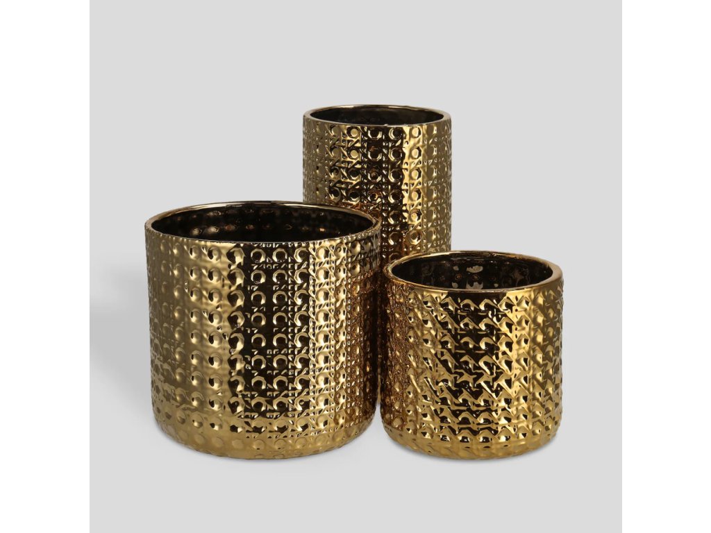 Štýlový obal na kvetináč z dolomitu v elegantnej zlatej farbe je vynikajúcim dekoračným prvkom do moderných interiérov. Ideálne sa hodí ako puzdro (rám) pre črepníkové rastliny alebo ako samostatná ozdoba. Jeho lesklý povrch dodáva interiéru šarm a sofistikovanosť.