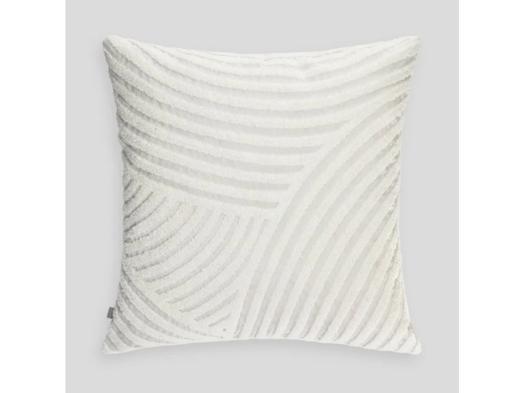 Biely sen s dotykom moderny. Táto velúrová obliečka Calama v čistej bielej farbe s prepracovaným abstraktným vzorom pruhov, ktoré vystupujú z povrchu, je štýlovým a elegantným doplnkom. Textúrovaný dizajn dodáva vankúšu hĺbku a vizuálny záujem, pričom si zachováva minimalistický a sofistikovaný vzhľad.