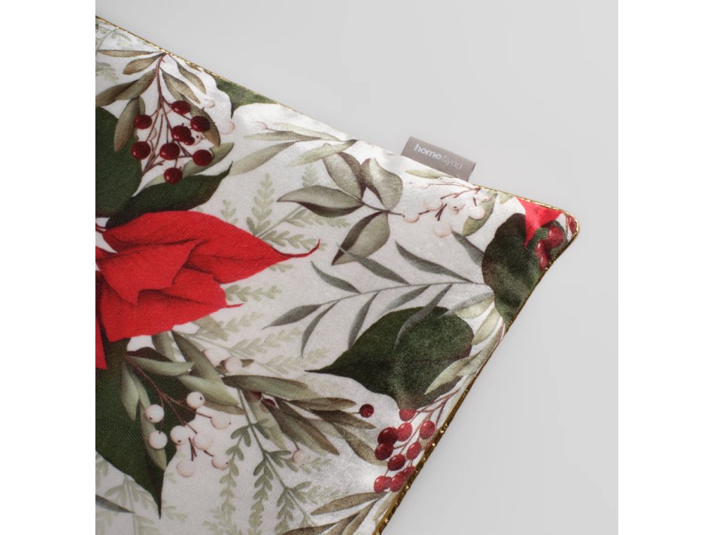 Premeňte vzhľad svojej obývačky alebo spálne s tlačenou obliečkou na vankúš Poinsetta 45 x 45 cm, ktorá okamžite navodí sviatočnú atmosféru a dodá interiéru výnimočný charakter. Mäkká textúra a zlaté detaily priťahujú pohľady a zaisťujú štýlový efekt.