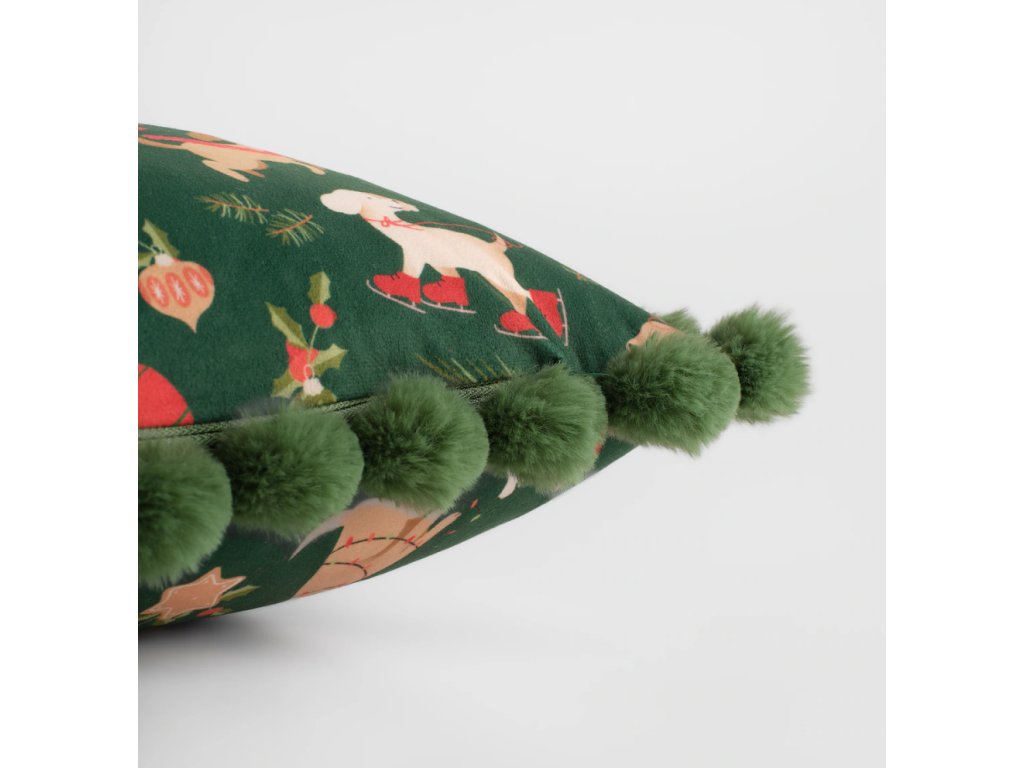 Hlboká, tmavozelená farba s radostnou, sviatočnou potlačou znázorňujúcou psov, vianočné stromčeky, darčeky a koláčiky podčiarkuje výnimočný charakter produktu.