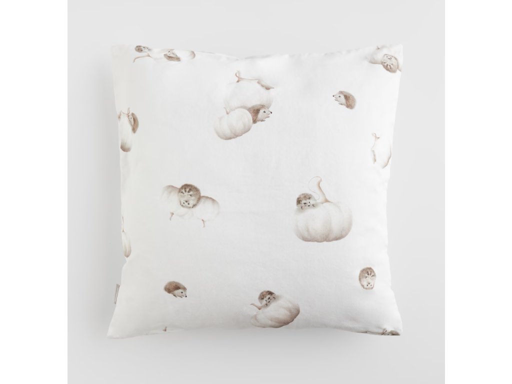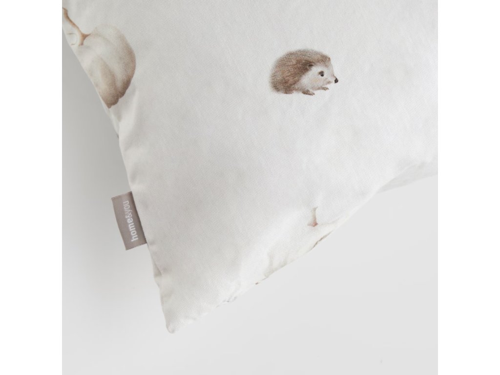 Dekoračná obliečka na vankúš z potlačenej bavlny v svetlobéžovej farbe s motívom tekvice je pôvabný doplnok, ktorý vnesie jesennú atmosféru do každého interiéru. Je vyrobená z prírodného materiálu, je príjemná na dotyk a odolná. Štvorcový formát 45 cm x 45 cm sa ideálne hodí na štandardné vankúše a dokonale sa vyníma na pohovke, kresle alebo posteli.