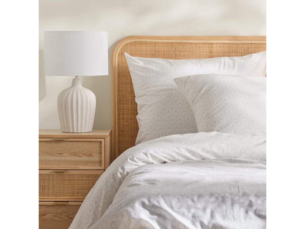 Moderné obliečky vyrobené z vysokokvalitnej bavlny s gramážou 110 g/m², zdobené štýlovým geometrickým vzorom. Prírodná a vzdušná tkanina zaisťuje komfortný spánok po celý rok a dizajnový vzor dodá interiéru originálny charakter. Ideálne pre minimalistické a moderné aranžmány spálne.