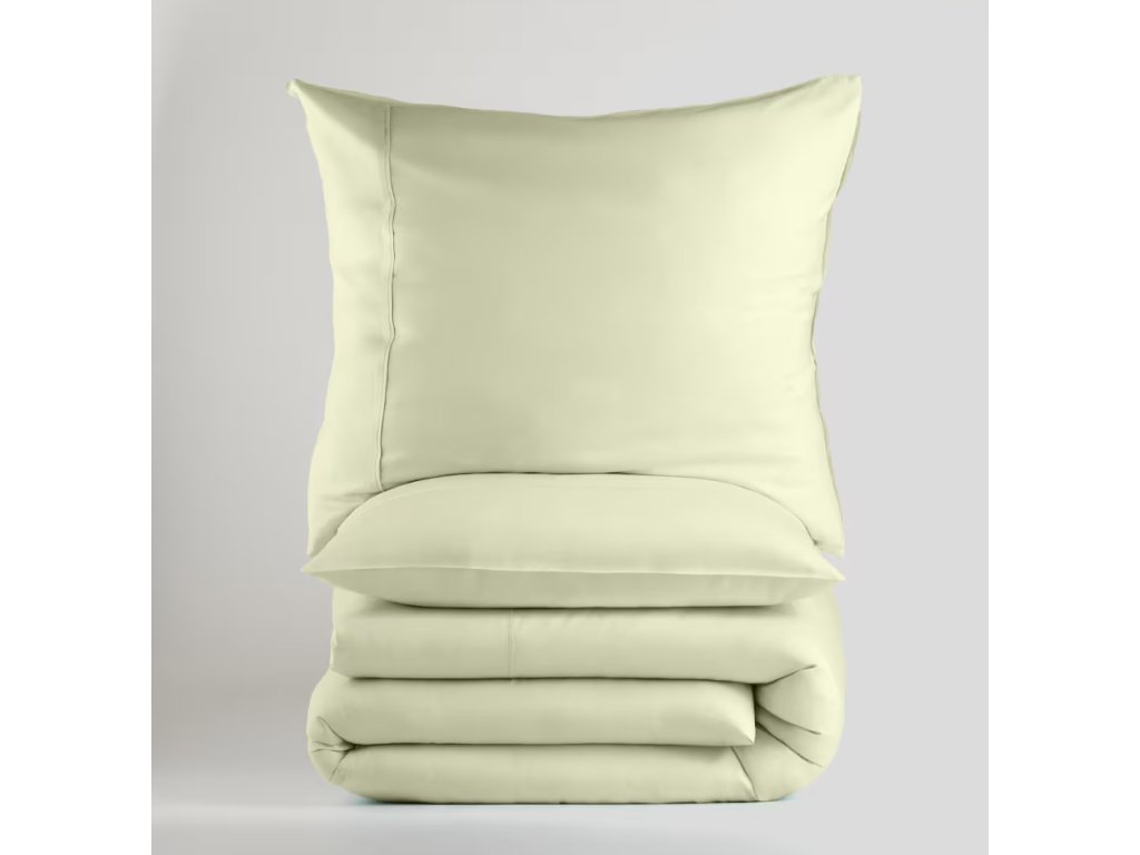Obliečky z bavlneného saténu v svetlozelenej farbe sú výnimočným spojením elegancie a komfortu. Vyrobené z vysokokvalitného materiálu, zaisťujú mäkkosť, jemný lesk a trvácnosť. Rozmer 200 cm x 220 cm sa dokonale hodí na dvojlôžkové postele, garantujúc pohodlie počas spánku. Subtílny svetlozelený odtieň vnáša do spálne sviežosť a harmóniu, pričom sa hodí do rôznych interiérových aranžmánov. Obliečky sú ľahké na údržbu a poskytujú luxusný vzhľad a pohodlie na každý deň.