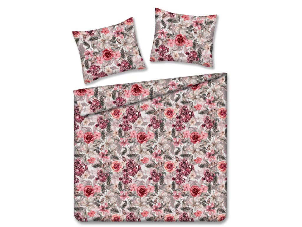 Krémový podklad obliečok Velmira zdobí živý kvetinový vzor v odtieňoch ružovej, červenej a zelenej, obohatený o jemné motýle. Takýto motív vnáša do spálne romantický charakter a skvele sa hodí k svetlým, klasickým aj moderným aranžmánom interiéru. Obojstranné vyhotovenie znamená, že vzor sa nachádza na oboch stranách – obliečky sa krásne prezentujú bez ohľadu na uloženie a originálny dizajn ich robí aj skvelým nápadom na darček pre blízku osobu.